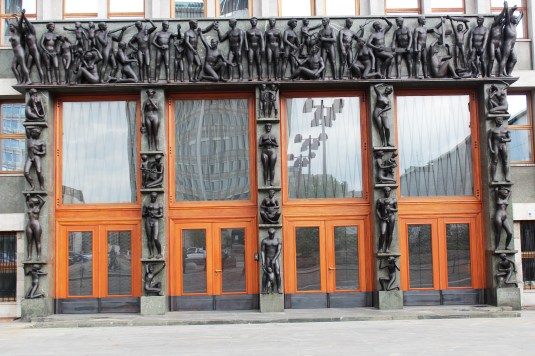 7) REPUBLIC SQUARE or TRG REPUBLIKE: This is the place where crowds gathered as Slovenia announced their independence from the Yugoslav Federation in 1991. This has been an important place for the locals for important public gathering and demonstrations in the past. There are few monuments and statues in this square. Across the road is the Slovene Parliament, with a façade decorated with nude statues of Slovenes at work and leisure.