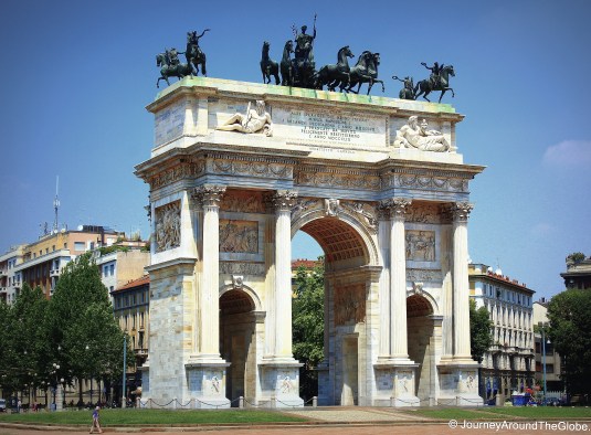8) SEMPIONE PARK and ARCH OF PEACE (ARCO della PACE):Sempione Park is a big open space of green land right behind Sforzesco Castle. It is very popular among the locals for hanging out or having picnics. At one end of this park, in Piazza Sempione, stands a neo-Classical monument called Arco della Pace or Arch of Peace. What was originally to have been a “Victory Arch” celebrating Napoleon’s imperial accomplishments was later restyled “Arch of Peace” to mark the end of a period of blood wars in Europe. The arch is only 10 minutes of walk from the castle, great if you want to take a stroll through the park and visit this historical arch on the other side. There is a memorial behind the basilica called Tempio della Vittoria that comemorates Milan’s war dead.
