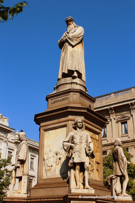 4) PIAZZA della SCALA: This is rather a small yet impressive square on the other side of Galleria Vittorio Emanuel. A statue of Leonardo da Vinci was erected in this square in 1872 to honor this multi-talented man who was not only a painter, but also was master in sculpting, engineering, and architecture. Behind this statue is Palazzo Marino, which has been Milan’s City Hall (Citta Di Milano) since 1861. Facing the city hall is the most famous building in this square is Teatro alla Scala. Not sure how it looks inside this opera house, but outside didn’t really impress me much. But this is one of the most renowned opera houses in the world that dates back to 1778.