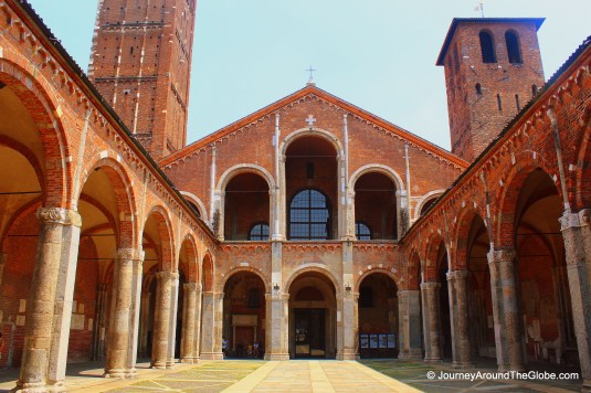 7) SAINT AMBROSE (BASILICA di SANT’ AMBROGIO): This is an old, beautiful, and big Byzantic/Romanic church in the older part of Milan. This was founded by the Bishop Ambrose between 379 and 386 A.D. His body is laid on the small chapel under the high alter. The basilica houses some unusual and precious art objects. The outer courtyard is very clam and quiet which is decorated with many original tablets and wall pieces. History of this basilica is also displayed here in English.