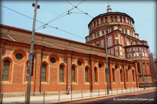 6) SAINT MARY of the GRACES (‘SANTA MARIA delle GRAZIE’): This is another must-see in Milan. The church is well-known for housing Leonardo da Vinci’s undoubtedly one of the most famous paintings “Last Supper” (1494-1498). It is a UNESCO World Heritage site as it represents a unique masterpiece of man’s creative genius. It’s best to reserve the ticket (about 8 euros per person) couple months in advance to experience this truly marvelous piece of work, which can be done by phone or online. This mural (which came to me as a shock, since I always thought it was done on a canvas) is located in a temperature and humidity controlled room along with another famous painting, The Crucifixion, from 1495 by a Milanese painter Giovanni Donato da Montarfano. The painting was done with the city of Jerusalem in the background. According to tradition, the initial and final episodes of the Passion of Christ are represented in the Refectory of Santa Maria delle Grazie with Last Supper on the north wall and The Crucifixion on the south. Another interesting fact about Last Supper is that Leonardo da Vinci tried to capture the shock and emotion (body posture, hand movements, and facial expressions) of the apostles after Jesus pronounced “Truly I tell you, one of you will betray me.” During WWII this whole building was badly bombed, fortunately, keeping both the wall of Last Supper (thanks to the protection put in place at the beginning of the war and prompt reconstruction work) and The Crucifixion intact with some light damage. Then from 1978-1999 the painting went through a heavy restoration process that took about 20 years to finish. Too bad we weren’t allowed to take picture inside the Refectory, but it will surely stay in mind forever.