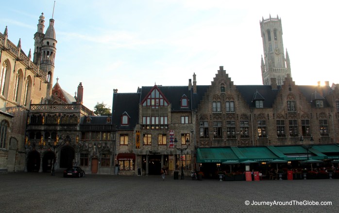 3) DE BURG: De Burg is another little but beautiful square situated right beside Grote Markt or the Market Place. You can follow the narrow alley from Grote Markt on the left side when facing the Belfry. Brugge’s present City Hall and old city hall are both in this square. The architecture of old city hall and Basilica of the Holy Blood are simply beautiful. We didn’t go inside any of these buildings and not sure if the visitors are allowed to go in. There is a café here and some shops on the alley that connects De Burg and Grote Markt.
