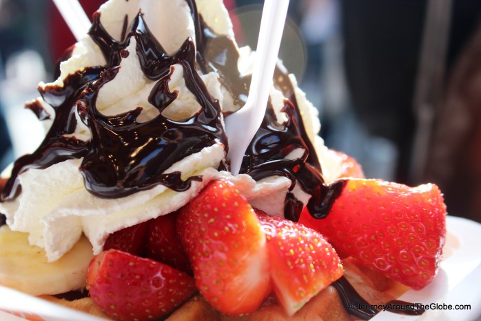 Another sweat treat that all must try in Belgium is the Belgian waffles. Don’t go for the cheap ones, you won’t get that “wow” effect in those. A good waffle with some toppings costs around 8 euros or more in Grand Place and buy them from a store called “The Waffle Factory”  which is one block away from Mannekin Pis towards Grand Place…they are the best.