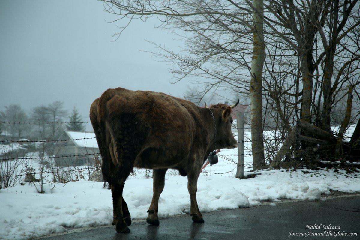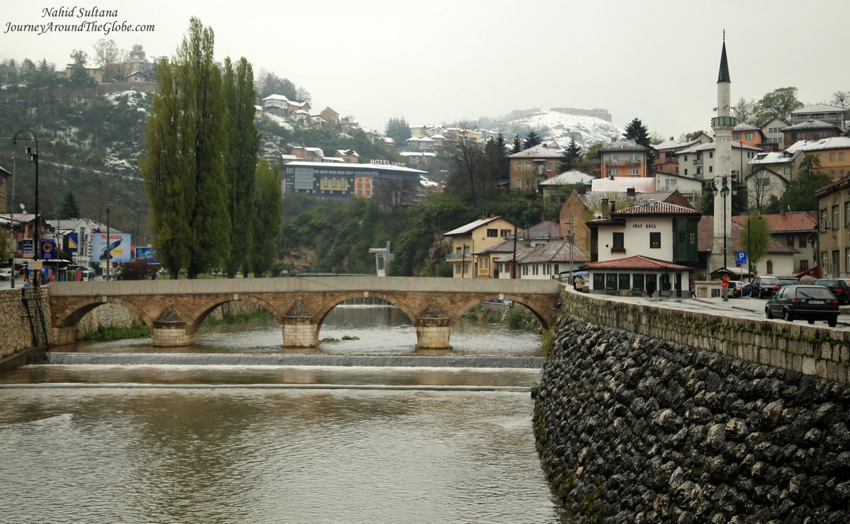 TIME of TRAVEL: After visiting Podgorica, Tirana, Skopje, and Pristina during our Easter break trip in 2014, our fifth destination was Sarajevo. It was a long 15 hours of drive from Pristina. The shortcut takes usually around 7 hours, but that’s thru the mountains and our hotel staffs told us not to take the mountainous road because it is very risky when snows. When we left Pristina, it was snowing in the city, but as we got towards the mountain, snow got thicker and heavier. Our small car started to skid and couldn’t move further. A police car told us next 50 km of the road would be very bad and we should turn around. So, we drove four hours for nothing and came back to Pristina. After lunch, we started driving towards Podgorica thru Albania and after 7 hours of exhausting but scenic drive, we spent the night in Podgorica. Next morning we started driving towards Sarajevo and took us about another 7 hours to reach our hotel there. The drive from Podgorica to Sarajevo is extremely beautiful with mountains, lakes, national parks, and villages. But I wouldn’t recommend anyone driving on this road at night, because of the road condition. They are narrow roads on the mountains with few deep trenches on the sides and zigzag paths. This drive can be very dangerous and fatal after dark unless you are a local. The so-called “highway” gets worse after you cross the border into Bosnia and Herzegovina. It’s beautiful but the windy narrow roads made me a bit sick.