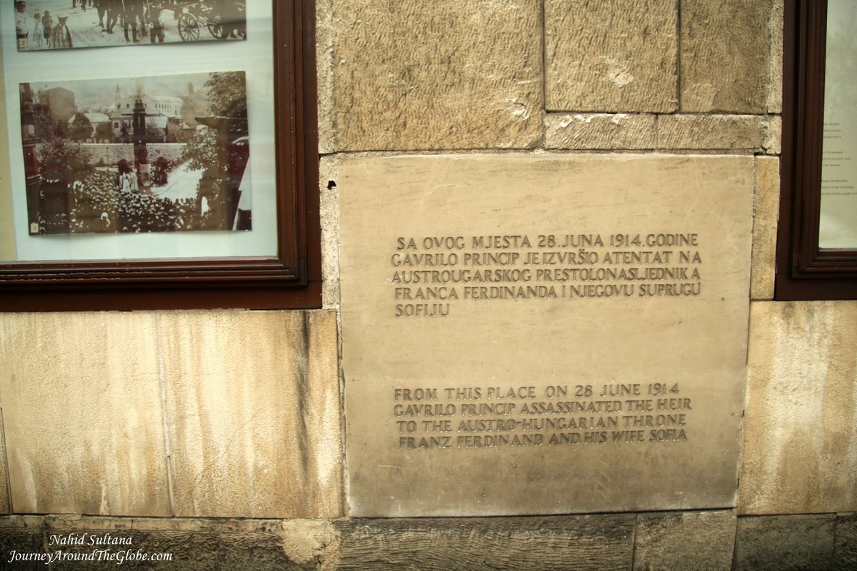 The exact spot where Austro-Hungarian heir to the throne Prince Franc Ferdinand and his wife Sofia were assassinated, right outside Museum of Sarajevo