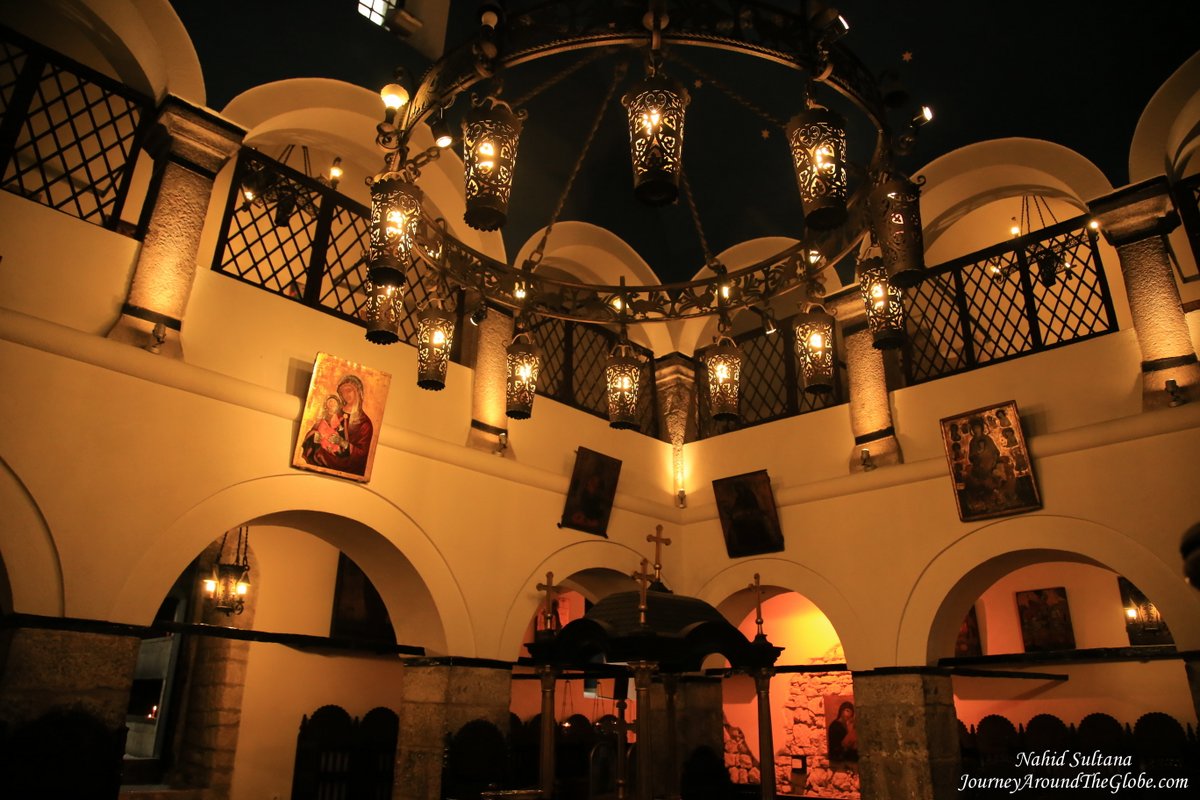 8) OLD SERBIAN ORTHODOX CHURCH: It started to drizzle when we started walking little bit out of the old town and towards this church. It’s also known as Serbian Orthodox Church of the Holy Archangel and is one of the most important Cultural and Historical monuments in Sarajevo and Bosnia and Herzegovina. It has been safe guarding holy icons and religious relics for centuries. This is a tiny and elegant church in the old quarter. Some say it’s from the 5th or 6th century while others say from 12 or 14th century and yet some only talks about its rebuilding during the Ottoman period in the late 15th or 16th century. But its present look is from 1730. Its archaic foundations and inner architectural constructions with two-storied arcades are from early Christian times (5th or 6th century). It has a nave surrounded on three sides by a colonnade which makes it a unique example of well-preserved church architecture in this part of the world. The most important and valuable feature of the interior of this church is the carved wooden iconostasis. It is a great beauty from 1674. The church bears interesting drawings, different outlooks, medieval folklore, and shows a rare beauty of colors.