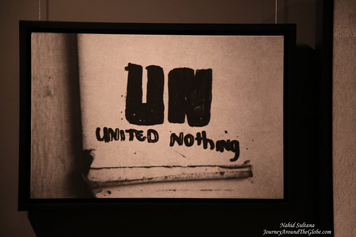 “UN – United Nothing” a sign inside Srebrenica Exhibition in Sarajevo