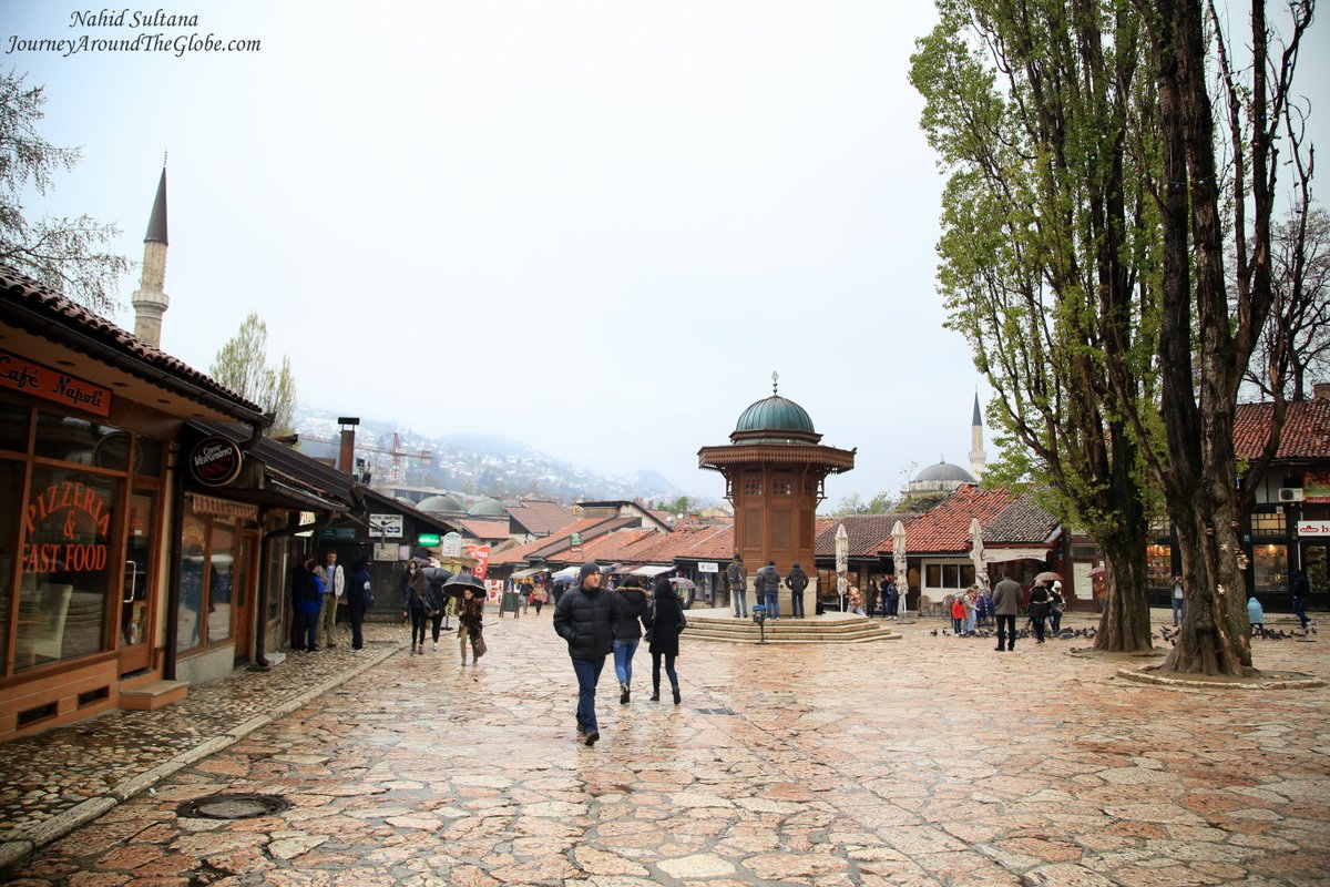 Heart of old Sarajevo and Sebilj (public fountain) in the middle