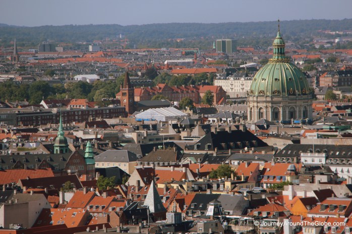 The dome of Marble Church can be climbed up to the top deck only by a guided tour. There are only 2 tours available every day, at 1 pm & at 3 pm. Ticket is 25 Danish kroner for adults, 10 kroner for kids 5 – 15, and free for kids below 5. Visitors have to climb 250 stairs to get a breathtaking view over the city. You can see almost all the main attractions of Copenhagen including towers of all the churches and Town Hall, Ameliaborg Palace right in front, canals, Oresund Bridge, and finally, Sweden on the other side of the bridge.