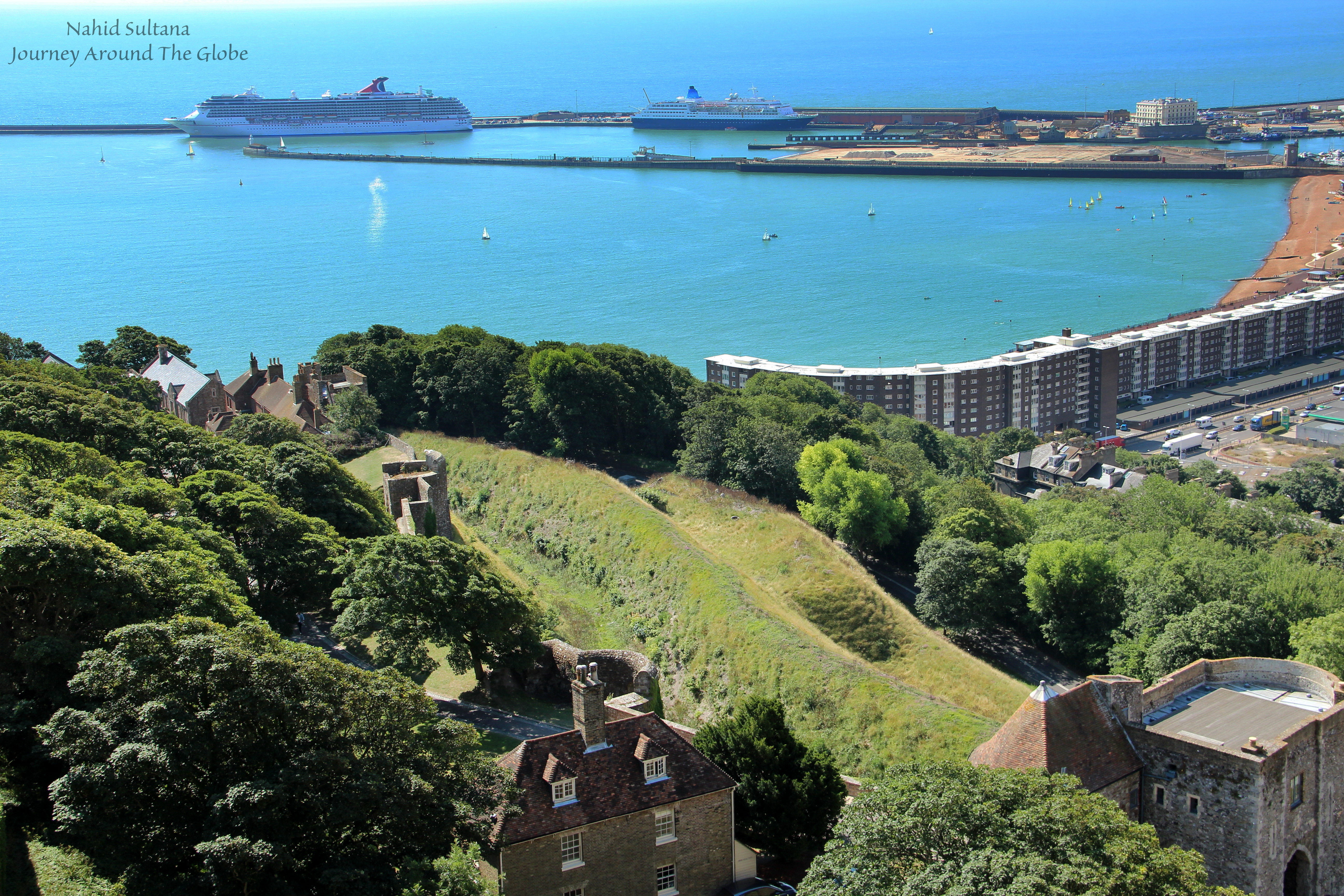 Dover port is the closest port to Continental Europe from mainland Britain. If you are coming from a ship or ferry you can see the towers of Dover Castle from far away with the white cliffs down below.