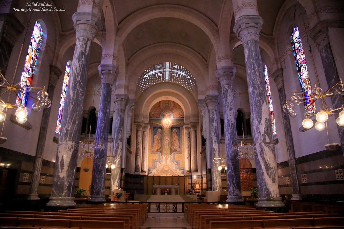 Built from 1909 onwards, The Visitation Basilica has been the home to Visitation nuns since 1911. The church was finally finished in the 1930s in Neo-Romanesque style. Inside, stained glass windows illustrate the lives of Francis of Sales and Jane of Chantal. Both were laid to rest in gilt copper sarcophaguses. The esplanade provides lovely views from the top. From here, you can appreciate the beautiful region of Annecy and its development. Inside the basilica is simple but has an elegant altar. Giant marble columns and exquisite stained-glass windows are definitely something to appreciate here.