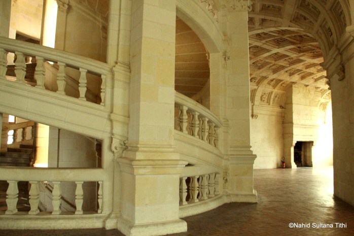 Exterior of Chambord is definitely more prominent than inside with elaborately developed roof line. This distinct French Renaissance architecture is probably one of the best looking chateaus (from outside) in this region. Although from outside the château appears graceful and well-balanced, the vast dimensions of inside have 77 staircases, 282 fireplaces, and 426 rooms. The state apartments, King Francis I’s room, Queen’s apartment will take you back in the Middle-ages. The decorative carvings on the vaulted ceilings are fabulous. The highlight of this building is the phenomenal double helix staircase which takes you to different floors and to the roof-terrace. View of Chambord estate is fantastic from top of the roof.