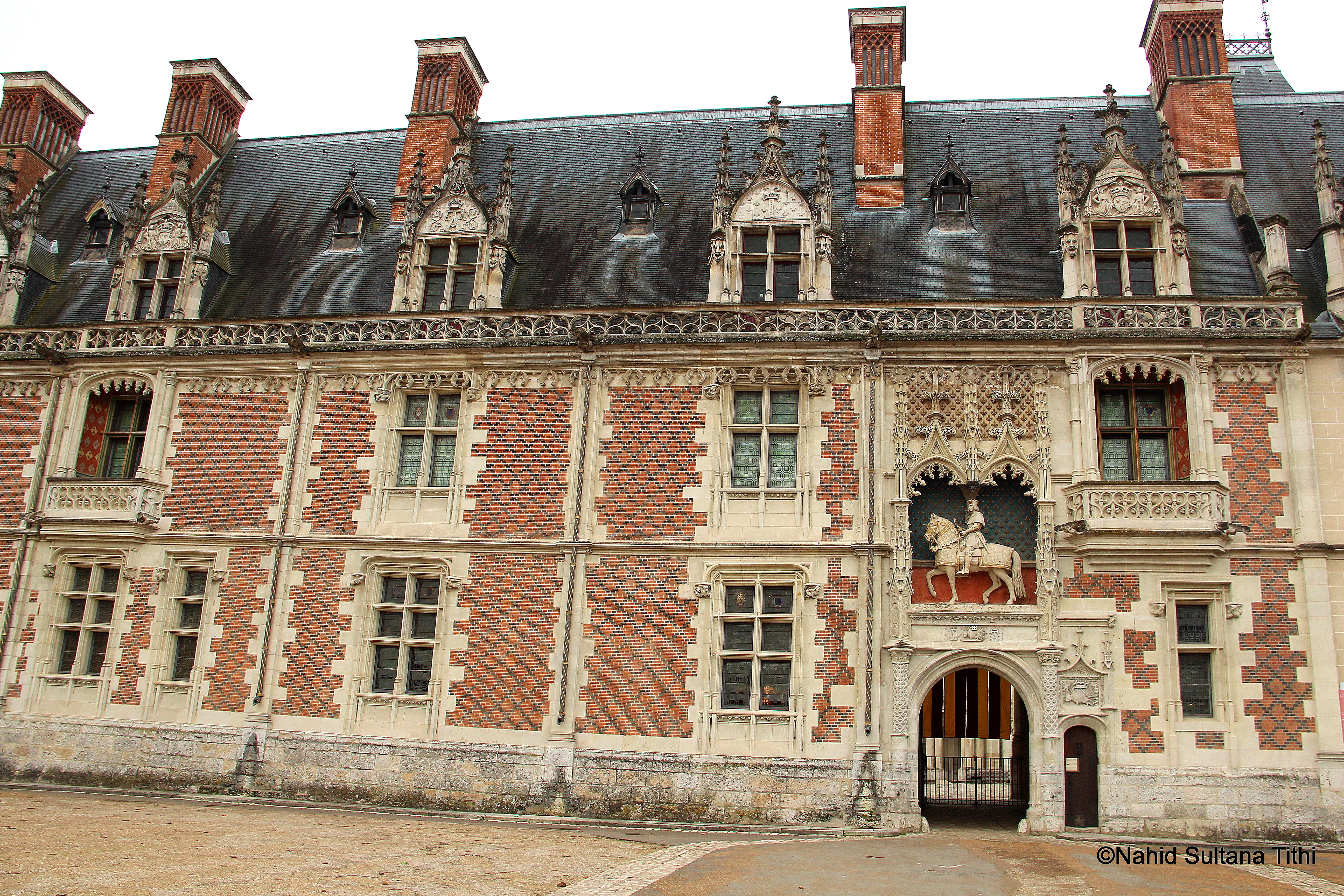 The main façade of this château is very artistic. Interior of Château de Blois combines 4 distinct wings around a single courtyard, each one featuring personalities of different period and style. The inner courtyard forms a unique panorama of French architecture with these 4 wings: Gothic (from the 13th century), Flamboyant (from late 15th century), Renaissance (from early 16th century), and Classicism (from about mid-17th century). The staircase tower of the Renaissance wing is definitely one of the highlights of the inner courtyard.