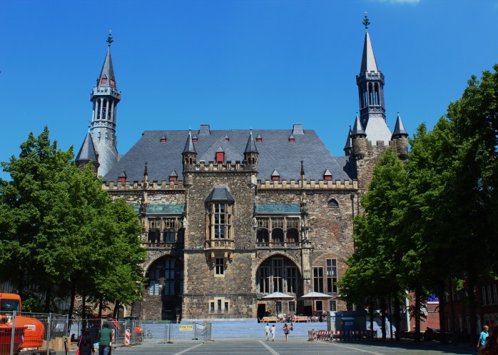 3) TOWN HALL/RATHAUS: In the place of today’s town hall there once stood the Palace of King Charlemagne of Aachen in the 8th century. King Charlemagne started building his favorite palace in Aachen from 789 on, and after his coronation in Rome in 800 it became his permanent seat of residence. The present town hall was built in the 14th century on the foundations of the former palace, and within some of its surviving outer walls. Later, this Rathaus went through numerous renovations and restorations transforming from Gothic Town Hall to a Baroque style, and finally to a neo-Gothic Town Hall in 1901. Its 20 meters tower is preserved in its original Carolingian state. The building suffered heavy damage from bomb raids during WWII in 1944.