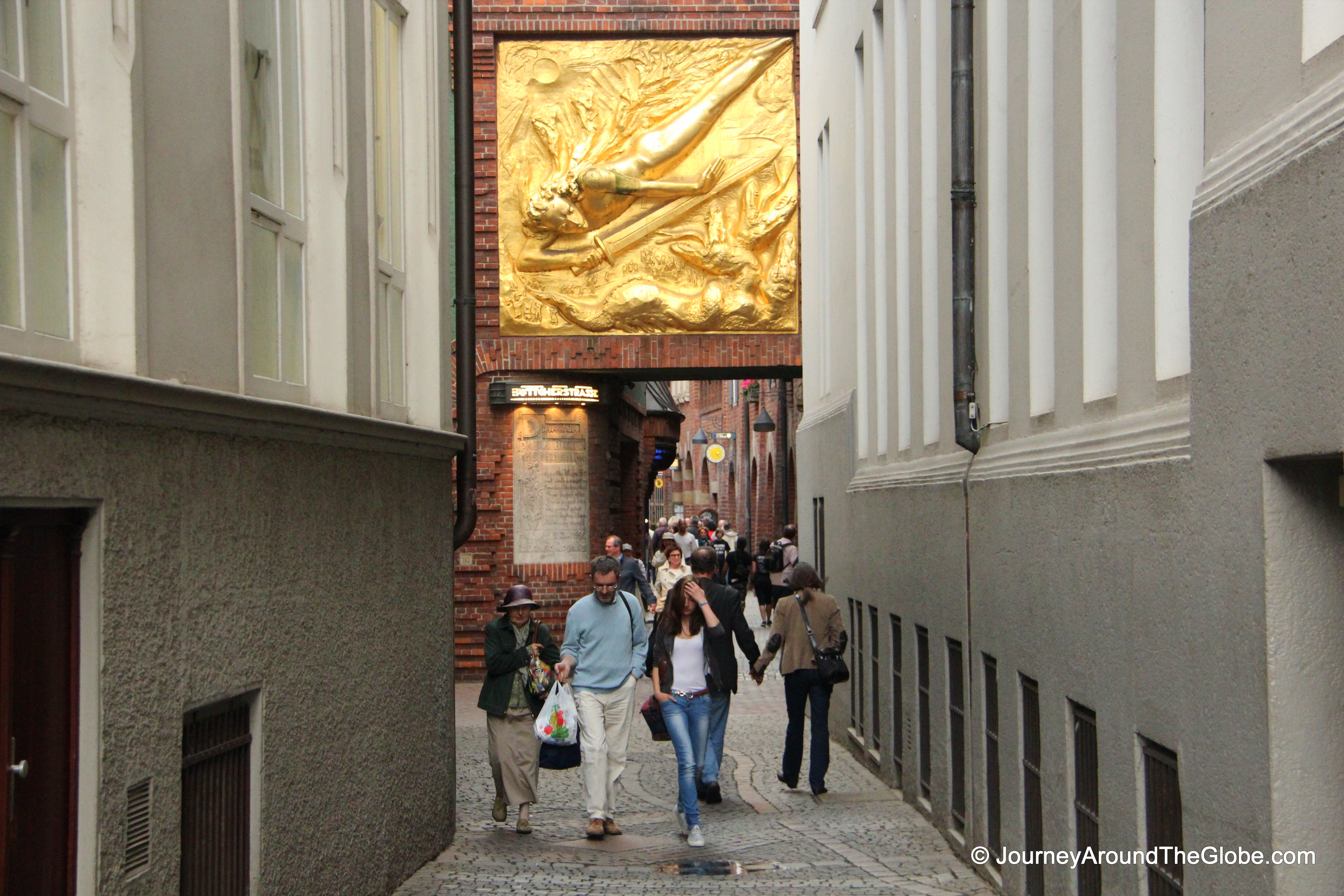 4) BOTTCHERSTRASSE: Just a little more than a hundred meters long, the Bottcherstrasse has been one of the most famous sightseeing attractions in Bremen since the 1920s. This pedestrian arcade is Bremen’s “secret high street”. A gilt relief called “Bringer of Light” adorns the gateway. It is a short street but an incredible Art Nouveau path with some fine facades and courtyards with large amount of design details. Museums, arts, and crafts workshops, winding alleys-ways, restaurants, hotels, and high-end retail shops create their own little world here. An impressive Glockenspiel, from 1923, chimes here everyday at 12, 3, and 6 pm.