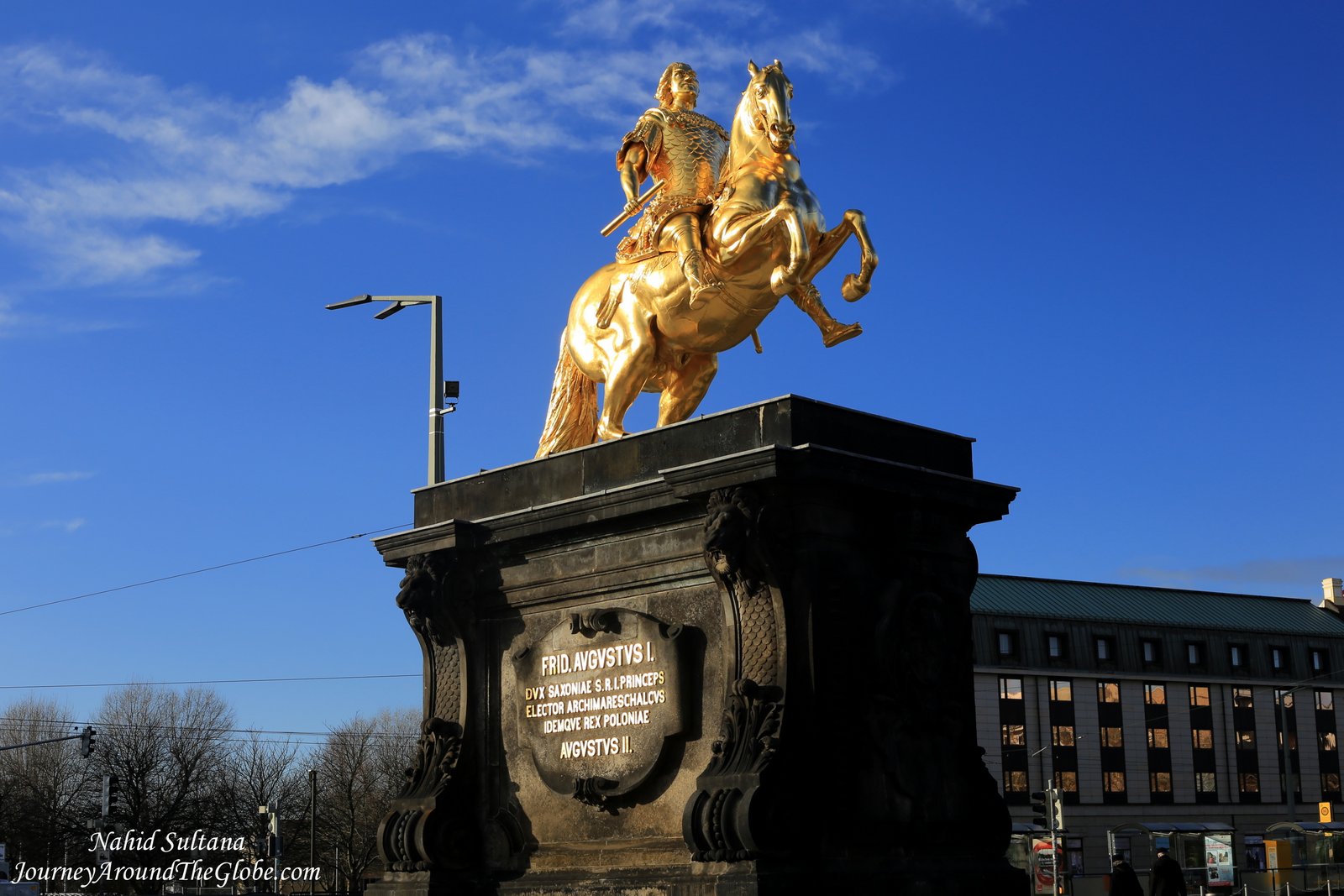 3) NEUSTADTER MARKT and GOLDENER REITER: After spending some in Schlossplatz we crossed the big bridge, called Augustus Bridge, and entered new part of the town. There are few things to see here, like Japanese Palace and some museums. We only went to the big square on the other side of the bridge after crossing an intersection. There is a golden statue of King Friedrich Augustus II in Neustadt, known as Goldener Reiter.