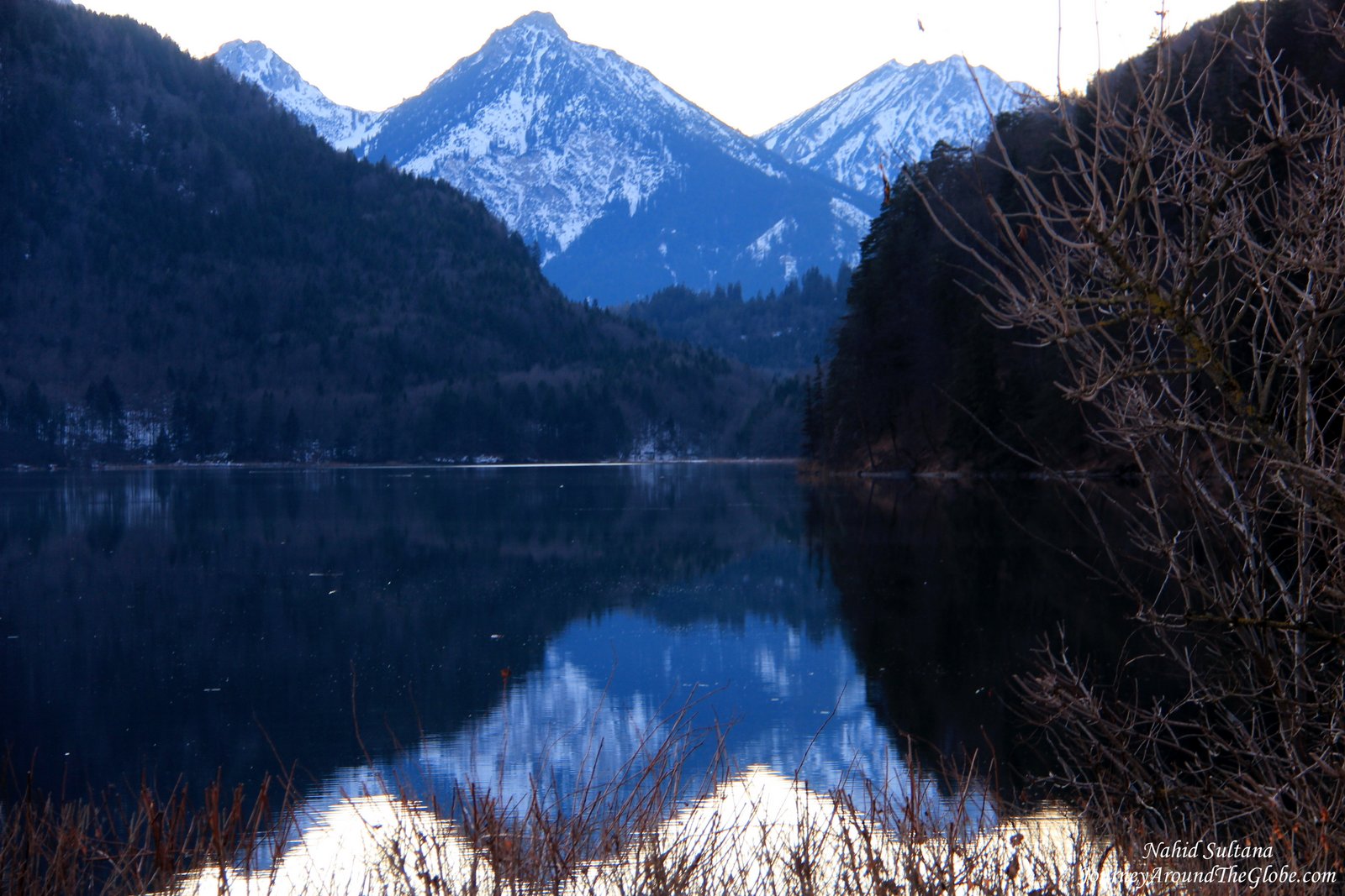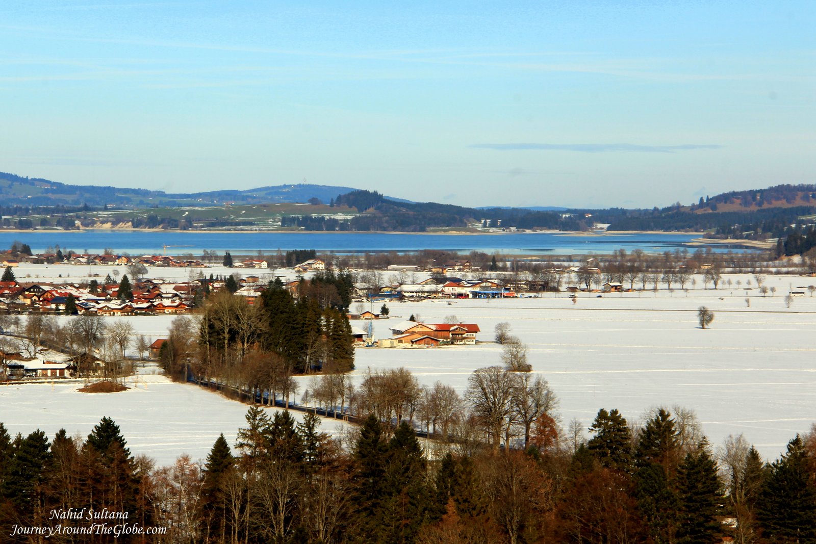 There is a big parking lot for the visitors of these two castles. There is also a beautiful lake, think it’s called Alpsee, by this lot where you can get a stunning view of portion of Bavarian Alps with its beautiful reflection on the water.