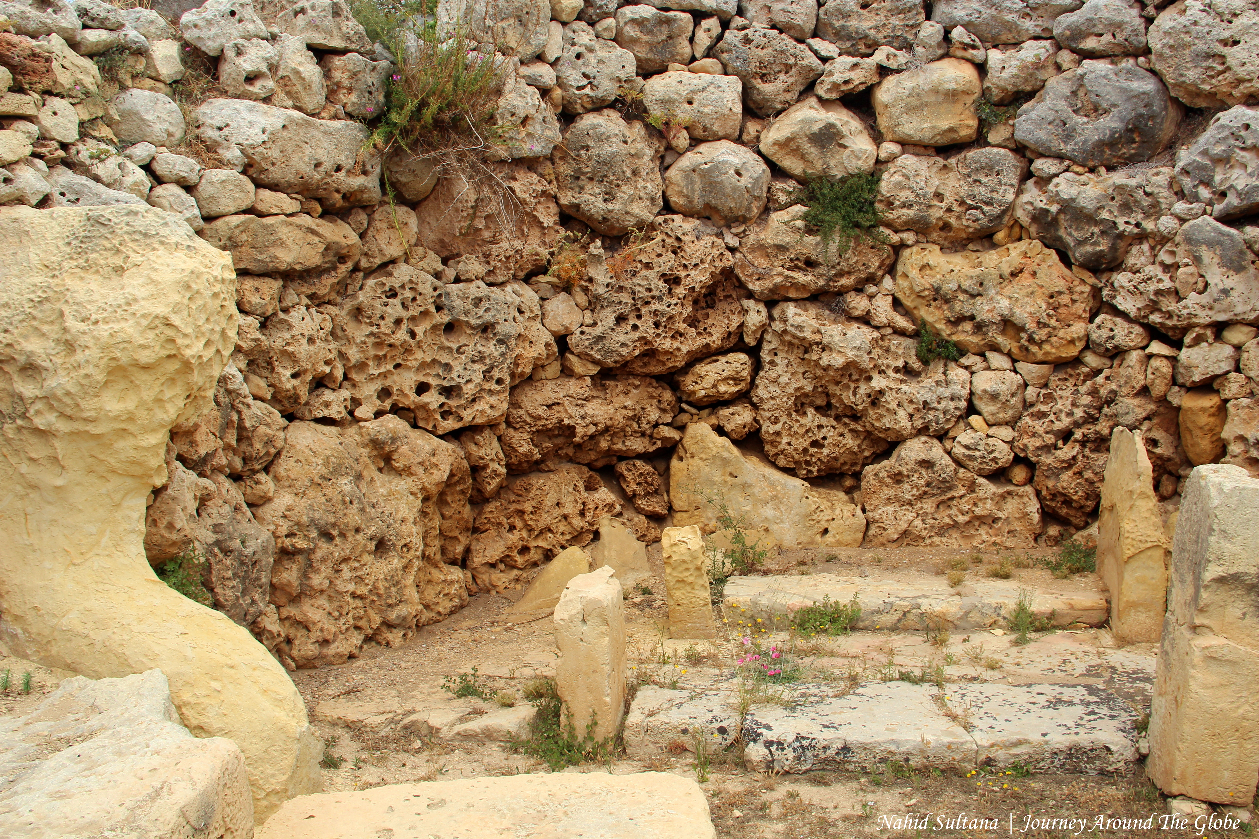 b) THE GGANTIJA TEMPLES: The Ggantija Temples, “Place of giants”, are thought to be the oldest free-standing structures in the world. The temples were the first of the Maltese prehistoric monuments to be cleared of the accumulation of earth and debris. The megalithic complex of Ggantija was erected in three stages over a period of several hundred years (3600 – 3000 BC) by farmers and herders of Gozo at the center of the Mediterranean. This complex stayed in used for some 1000 years until Maltese Temple Culture disappeared abruptly and mysteriously. Later around 2500 – 1500 BC the site was adopted by the inhabitants as a cremation cemetery. They say, these temples are 1000 years older than the pyramids in Egypt, making it a UNESCO World Heritage Site. Presently it’s only the ruins we saw but definitely are among the best-preserved temples on the Maltese islands.