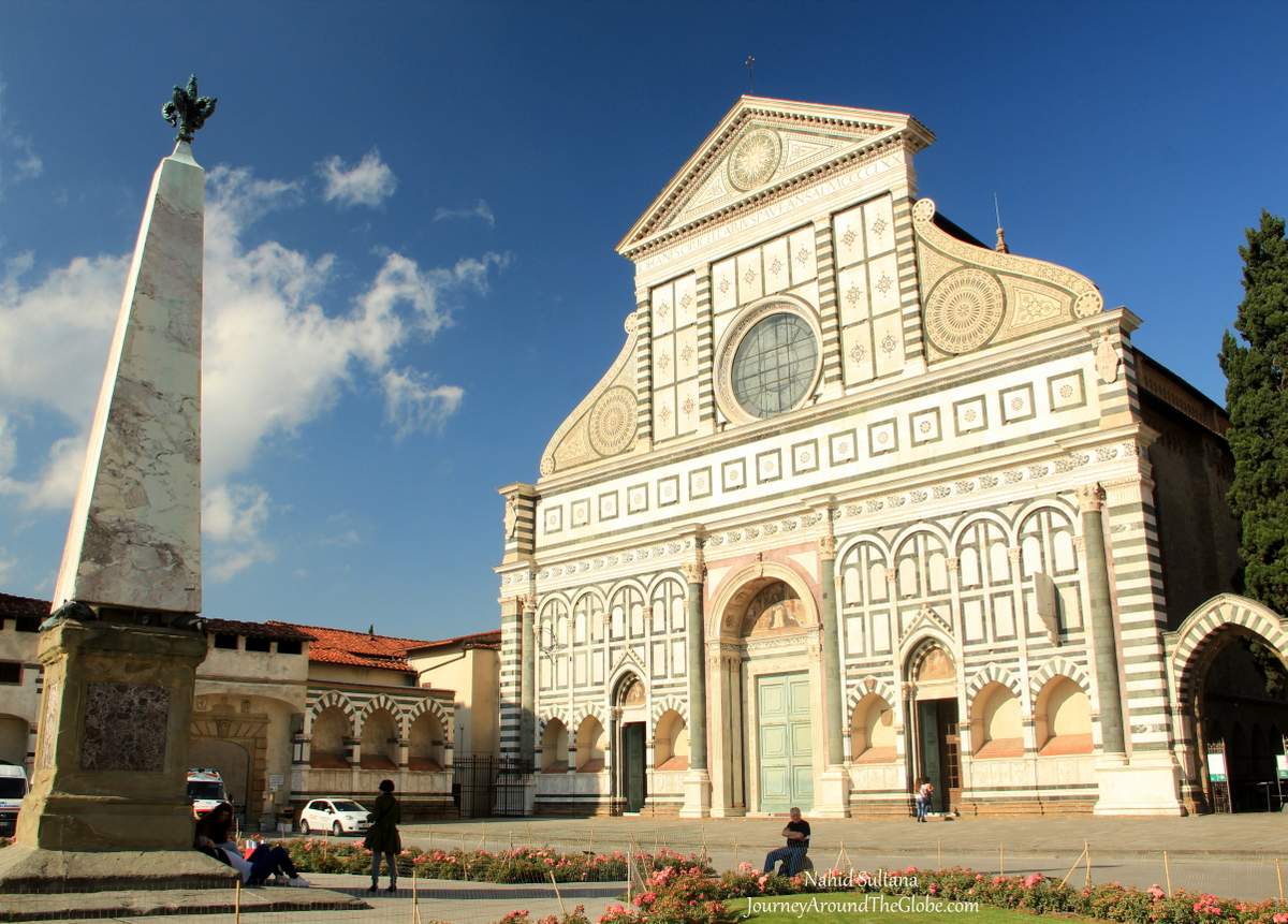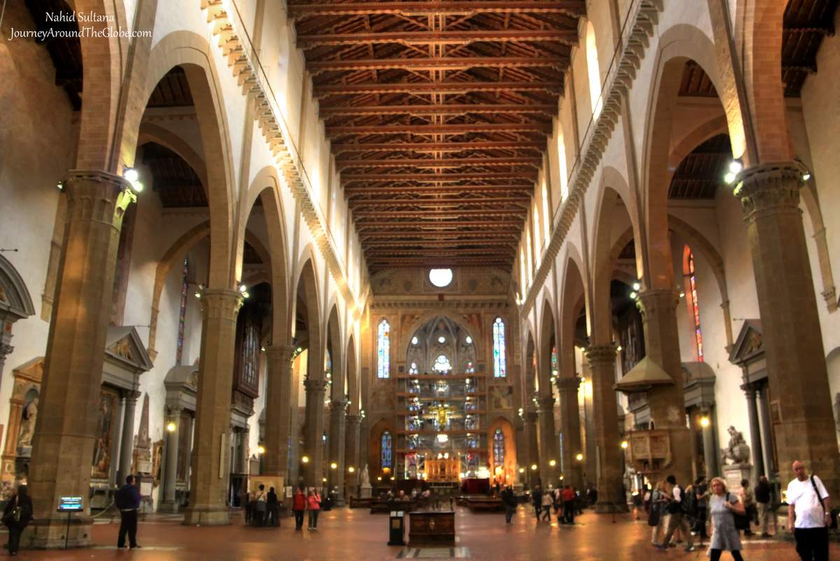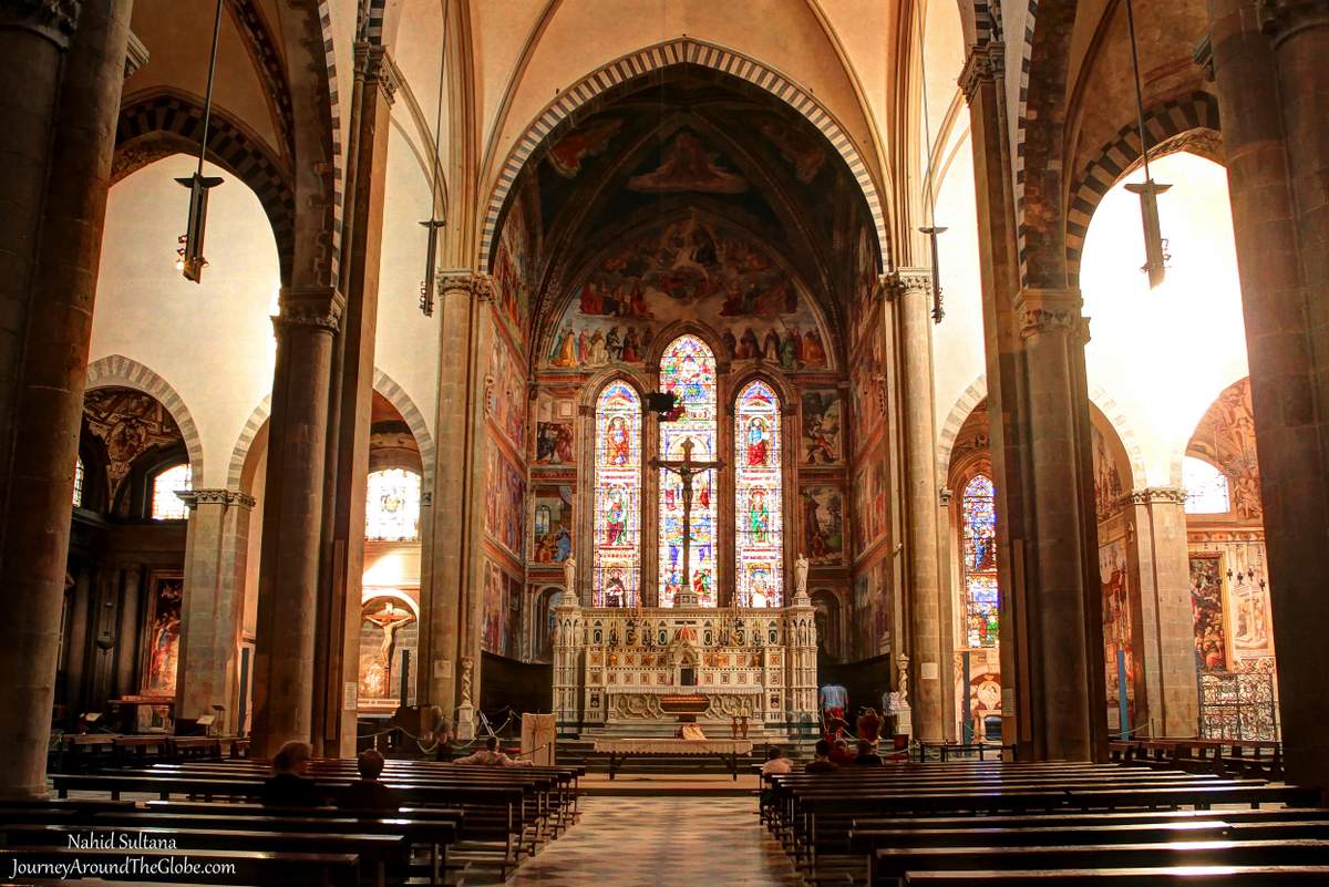 1) BASILICA SANTA MARIA NOVELLO: After parking our car, we crossed a big road to come to this bold edifice. This bigger version of an original church begun in 1279. Its internal structure resembles that of Cistercian Gothic churches. The major 14th-century decorative schemes date from the years after the Plague of 1348. Among many beautiful frescoes in this basilica “Last Judgement Hell”, “Paradise”, “Trinity with the Madonna, “Scenes from the life of Noah” are to name some and most of these frescoes are from the 14th and 15th Also, look for the fresco “The Passion and Resurrection of Christ” from 1367. Some of this basilica’s key attractions are its high ceiling, many over-sized medieval paintings and artworks, tombs of some famous Florentine sculptors and bishops.