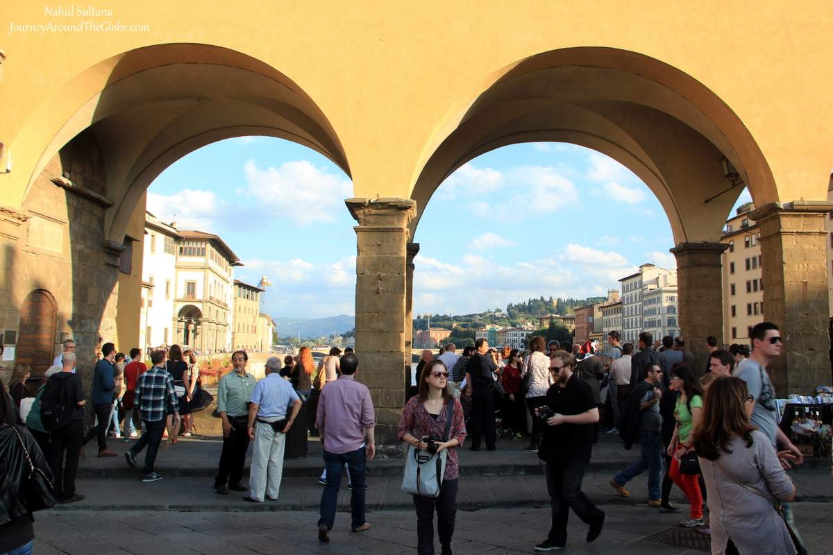 5) PONTE VECCHIO: Surrounded by the ultimate grandeur Ponte Vecchio is the oldest and most famous bridge over River Arno. It’s a pedestrian bridge with beautiful views of River Arno on the both sides, if you can manage to see the river over the countless jewelry stores and tourists.