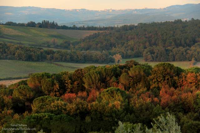 TIME of TRAVEL: We were in Tuscany in October 2013. The best part of visiting Tuscany during this time was that we had this beautiful place almost to ourselves. The crowd slowly starts to vanish once the summer is gone and autumn shows up. While is very pleasant during the daytime, it can get a bit chilly on the mountains or in the countryside in the late afternoons, always better to carry a light sweater for those moments. We were on our way to hotel after visiting Siena at the end of our first day in Tuscany and had just little time to spend before the daylight was gone. We drove to Monteriggioni just in time to enjoy a beautiful sunset in the hillside of Tuscany.