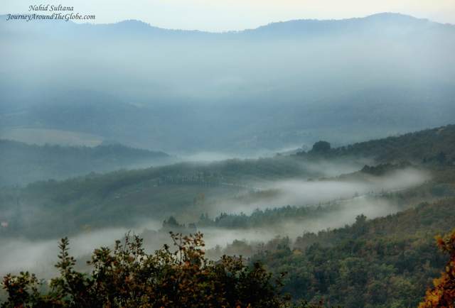 OUR HOTEL: We stayed in “My One Hotel in Radda” for the whole time in Tuscany. It’s located in the hills of Chianti…a place which is not only famous for its wine, but also for its art, history, natural beauty, and simplicity. This was a 4 or 5 star resort. We had free grand breakfast buffet, spacious room, clean linens, and excellent customer service. But above all of those, the best part of it is the view from our balcony or from the hotel terrace. Standing on the upper terrace one early morning, I got the perfect glimpse of Tuscan hills and trees hugging the autumn clouds…it was a breathtaking feeling. I felt like I didn’t need to get out, I could have just sit in my hotel balcony all day and enjoy Tuscany right from there.