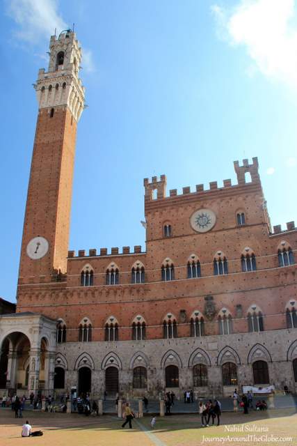 Palazzo Publico or Sienna City Hall dominates Piazza del Campo and its tower Torre del Mangia overlooks the square. This is an 800 years old city hall and is still in working condition. We couldn’t do it with the kids, but tourists can climb some 300 steps of “Torre del Mangia” to get a 360 degree panoramic view of whole Sienna and its countryside. The ticket is 8 euros per person and only 25 people can access it at any given time for 15 minutes.