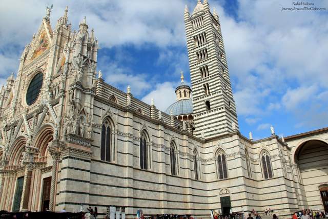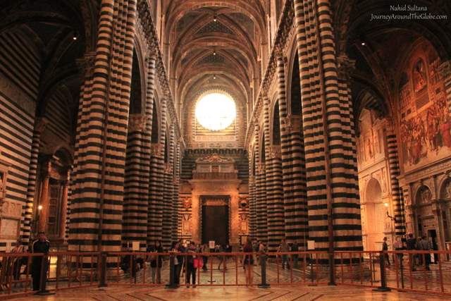 2) SIENNA DUOMO: From the main square of Sienna we headed to the main highlight of Sienna…Sienna Duomo. If you have time to see only one thing in Sienna, this would be it. This is one of the most extravagant cathedrals in whole Tuscany. Its black and white interior and Italian Romanesque style architecture with grandly curved entrance never fail to please the visitors. Loved the gorgeous altar, magnificent ceiling, artsy floor tiles, medieval frescoes, and every single statue.