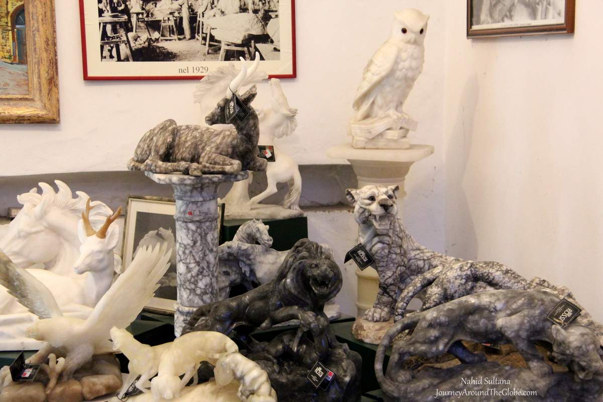 Volterra is very well-known for its alabaster items, ceramics, and pottery arts. There was a big souvenir alabaster shop right before we entered the Old Town, very close to the parking lot. Alabaster can be very heavy depending on the size of gifts you are buying but they all looked very gorgeous with reasonable price tags.