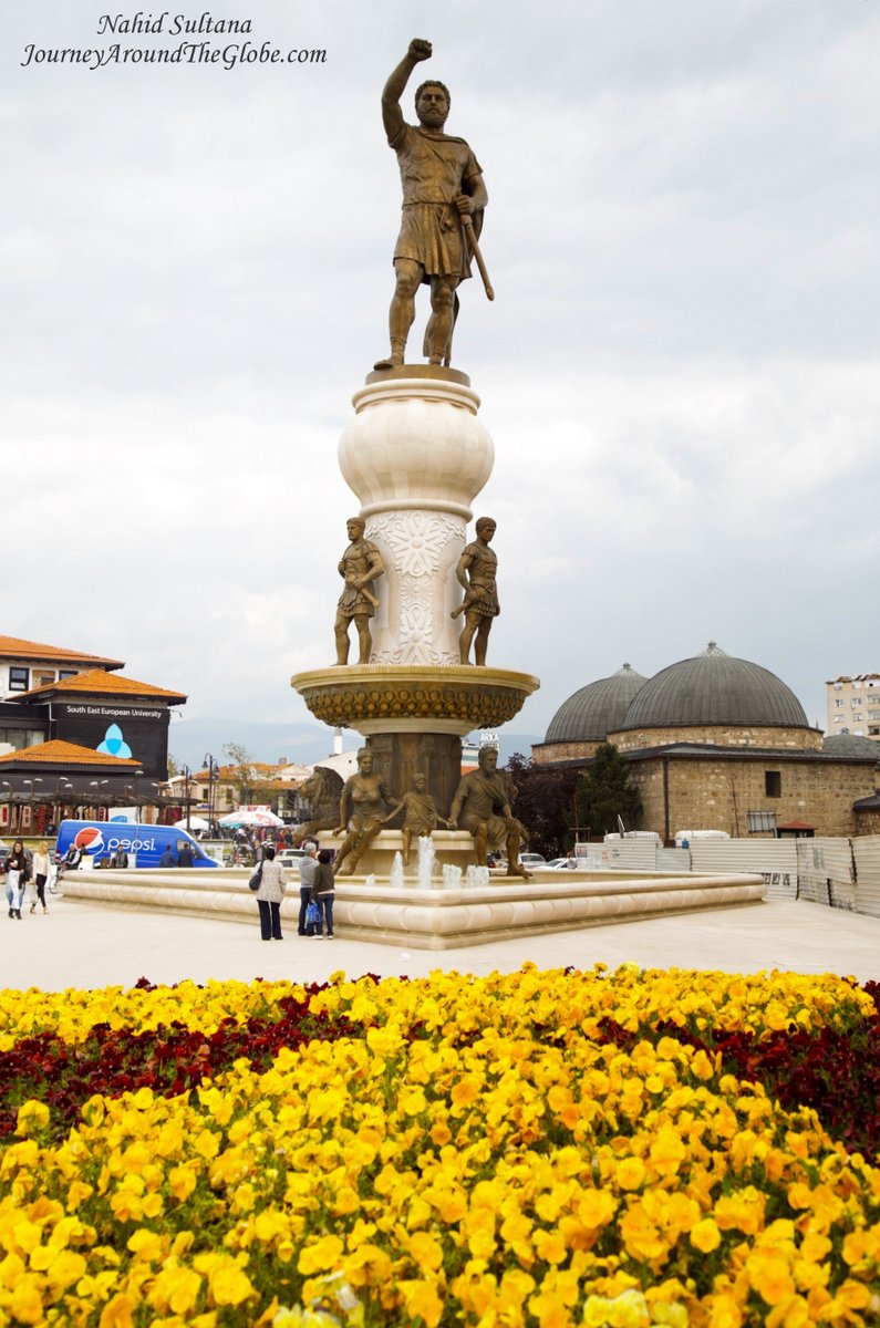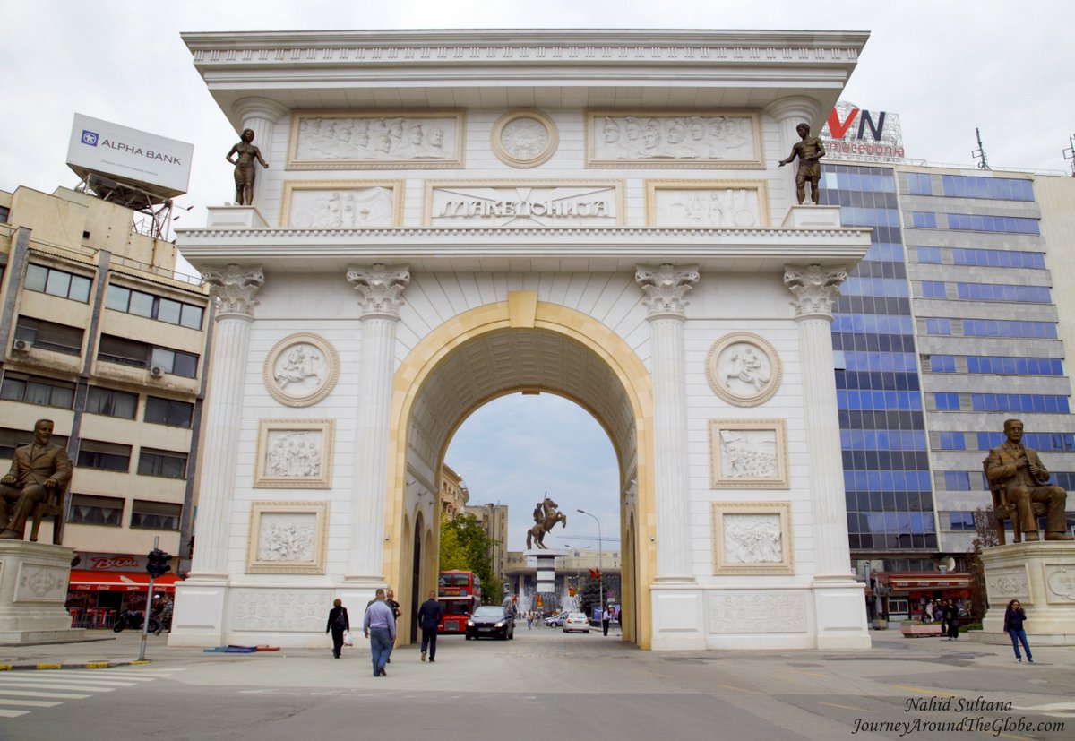 4) PORTA MACEDONIA: After visiting the parliament and the big park in front of it, we entered the city center again thru the grand Porta Macedonia. This is a white triumphal arch gate in between the parliament and Macedonian Square. The gate is dedicated to the 20 years of independence of Macedonia. Not sure of the statues of two gentlemen sitting on the two sides of the gate…may be two Macedonian heroes.