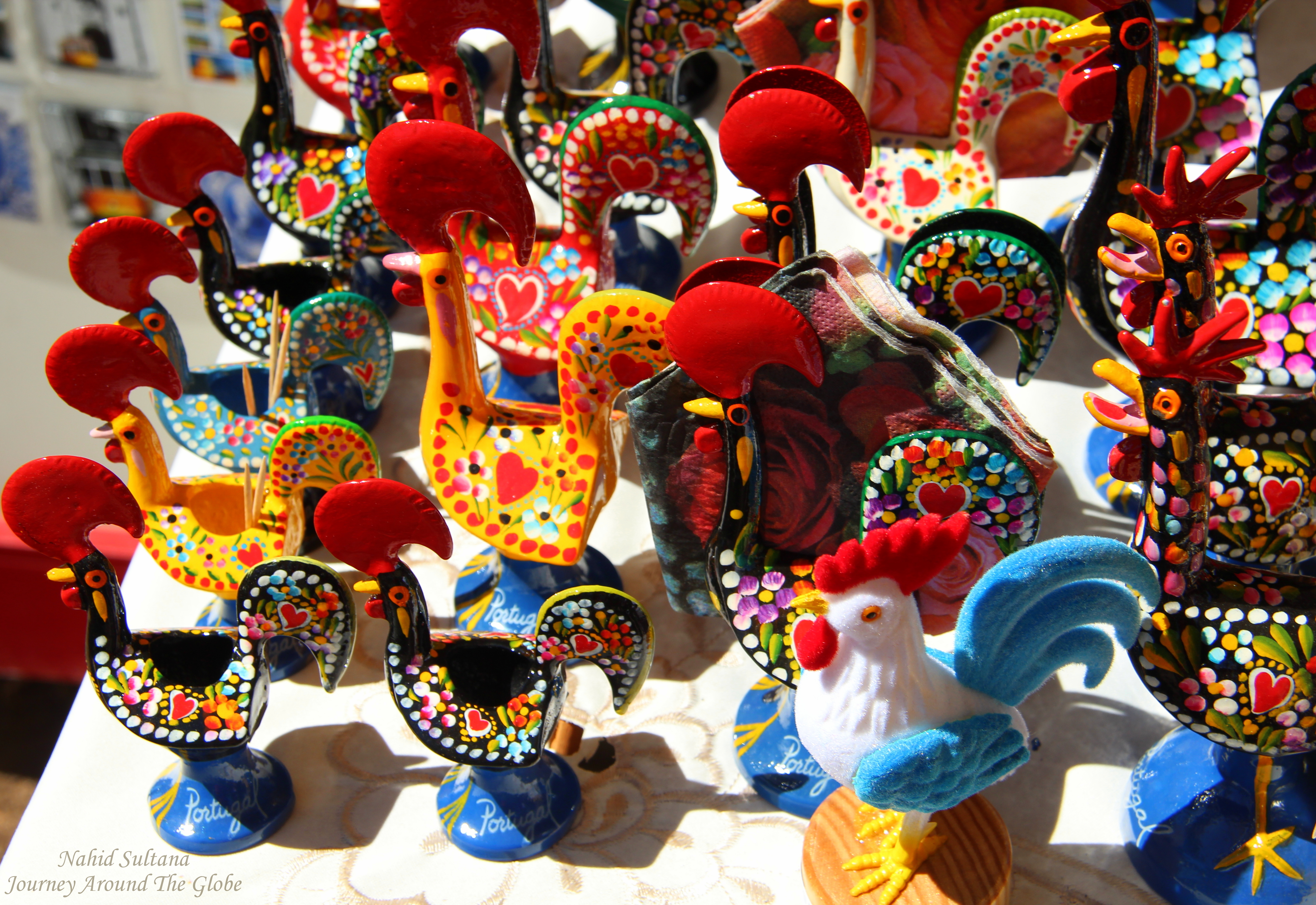 Tiles and ceramics are very popular souvenirs here. One thing we saw in EVERY store was many colors of roosters. They have a legend that rooster brings good luck; I am sure you can find one that will suit your taste. Also, sardine is a popular souvenir to take back home too…but not the actual fish. You can get lots of goods with pictures of sardine here, like t-shirt, mugs, small replicas, and etc.