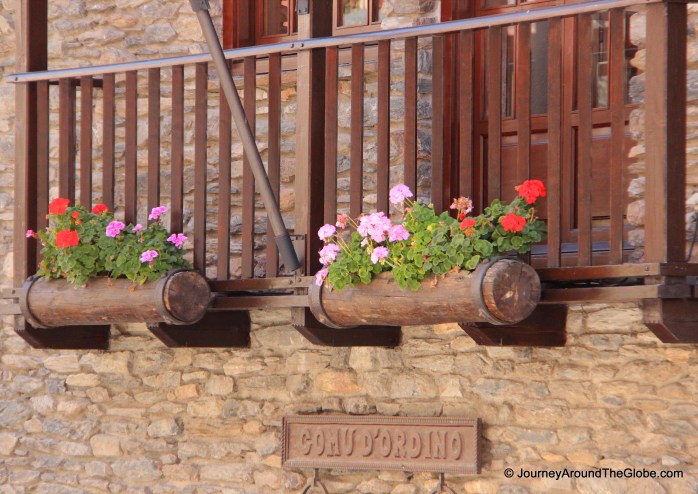 The whole street of Carrer Major in Ordino was decorated beautifully with these type of big and small wooden flower baskets