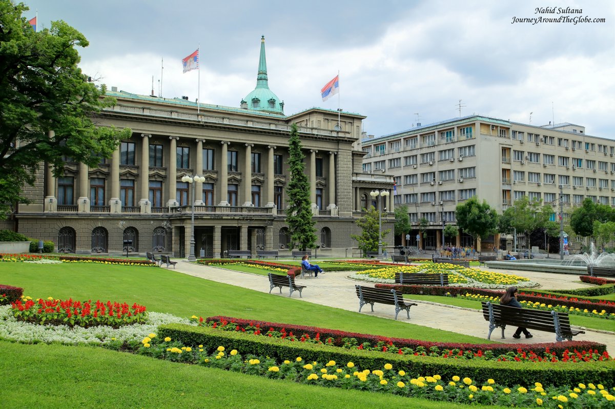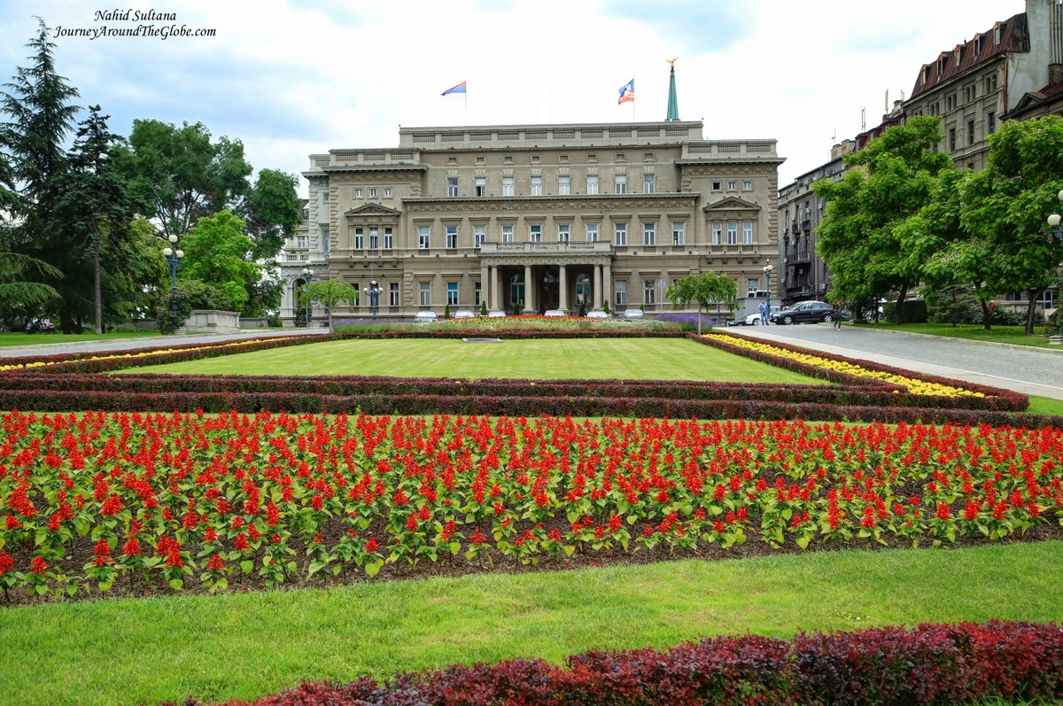 7) NIKOLA PASIC SQUARE (Old Royal Palace, New Palace, and National Assembly of Serbia): Nikola Pasic Square is a huge square that houses some of the important buildings of the city and country. Three of them are the National Assembly of Serbia, the Old Royal Palace, and the New Palace. National Assembly of Serbia and the Old Royal Palace are located opposite of each other divided by a major street in the middle. National Assembly is an elegant building with few domes at one side of Nikola Pasic Square. We saw the Old Royal Palace from the other side of its garden. Built in 1881, the Old Royal Palace is now used as Belgrade Town Hall.