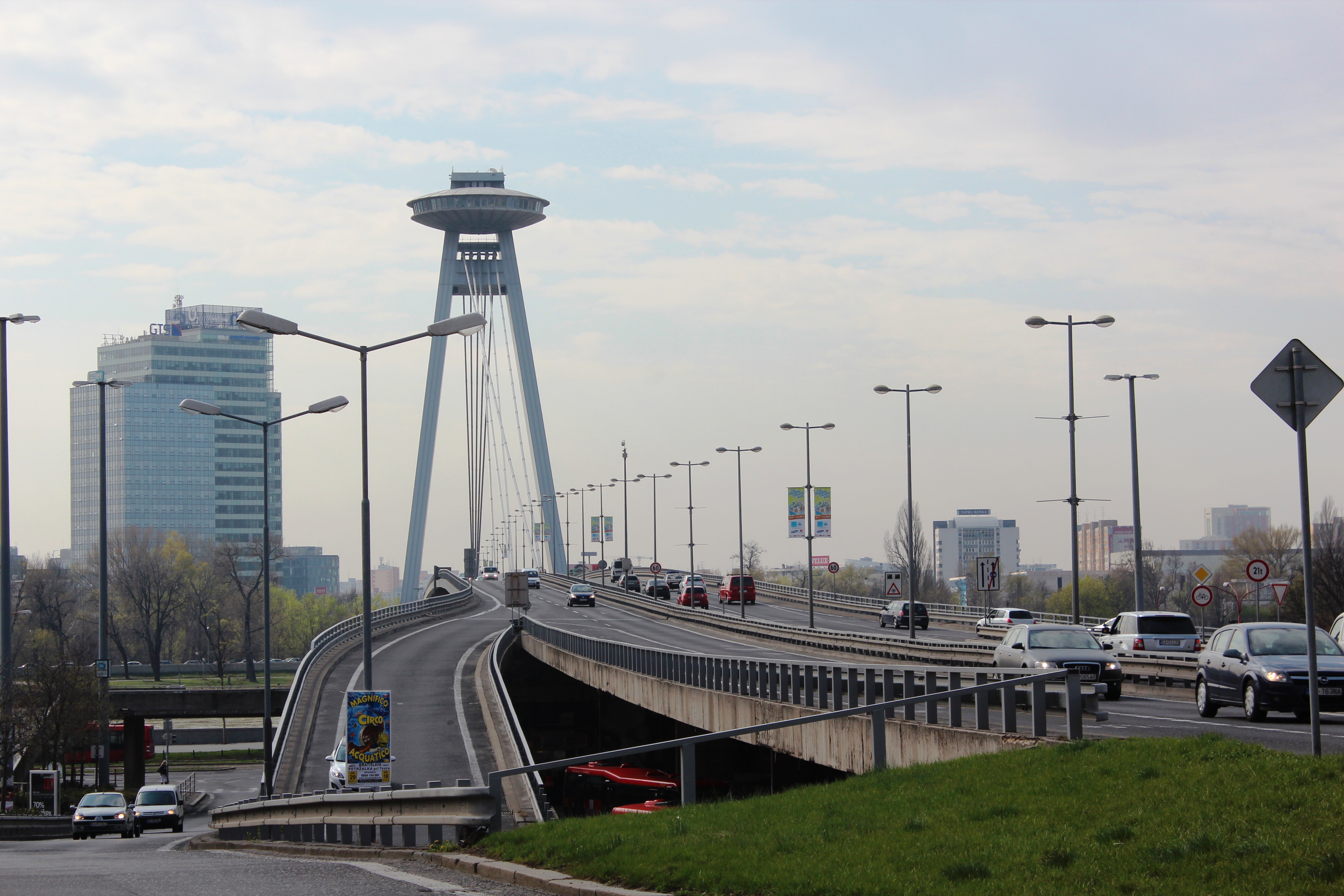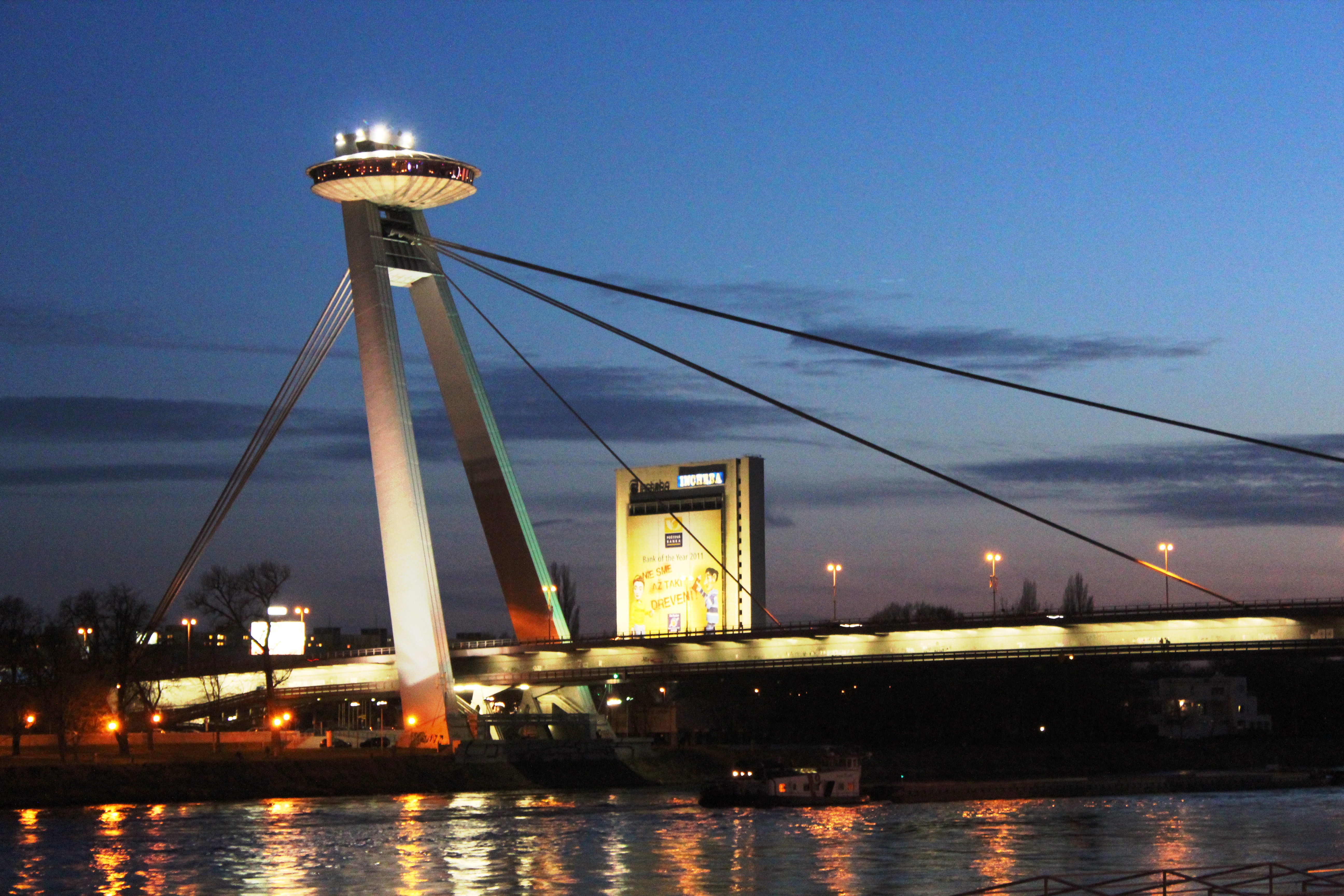 1) NOVY MOST or NEW BRIDGE: New Bridge is over River Danube and can be easily identified with its flying saucer-like structure housing an observation deck and a restaurant, called UFO. It looks gorgeous at night with all the lights.