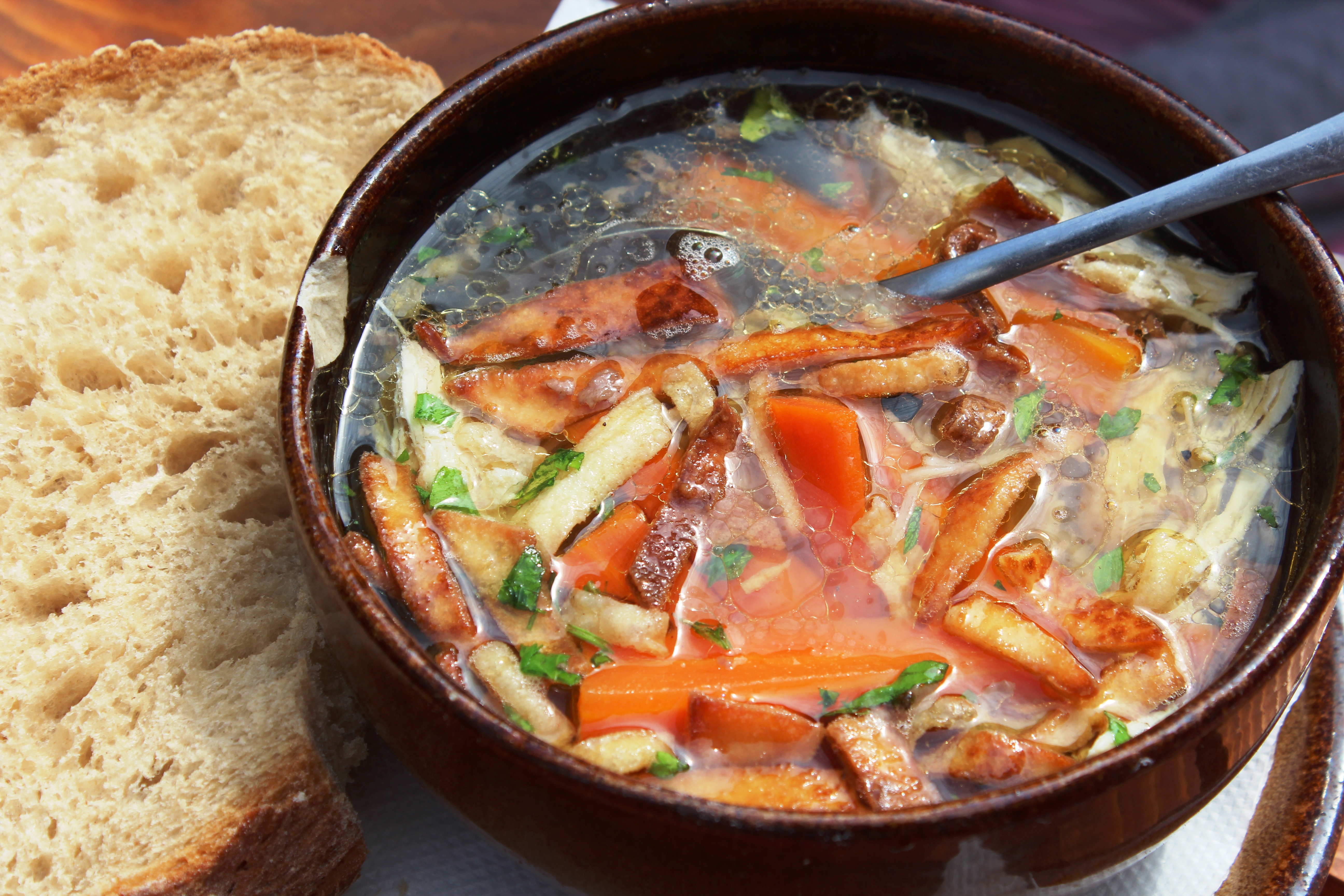 For food, we had lunch in a restaurant near Michael’s Gate (the restaurant says “Traditional Slovak Restaurant”. This place had some traditional Slovak dishes. My husband tried old Slovak-style chicken soup with carrots, chicken, hand-made noodles and French fries. I never had French fries in my soup before…delishhh. Another dish I tried was old Slovak-style roasted beef with fried onion. Very unique in taste and the fried onion added burst of flavor in my mouth with a piece of roasted beef…yummm.