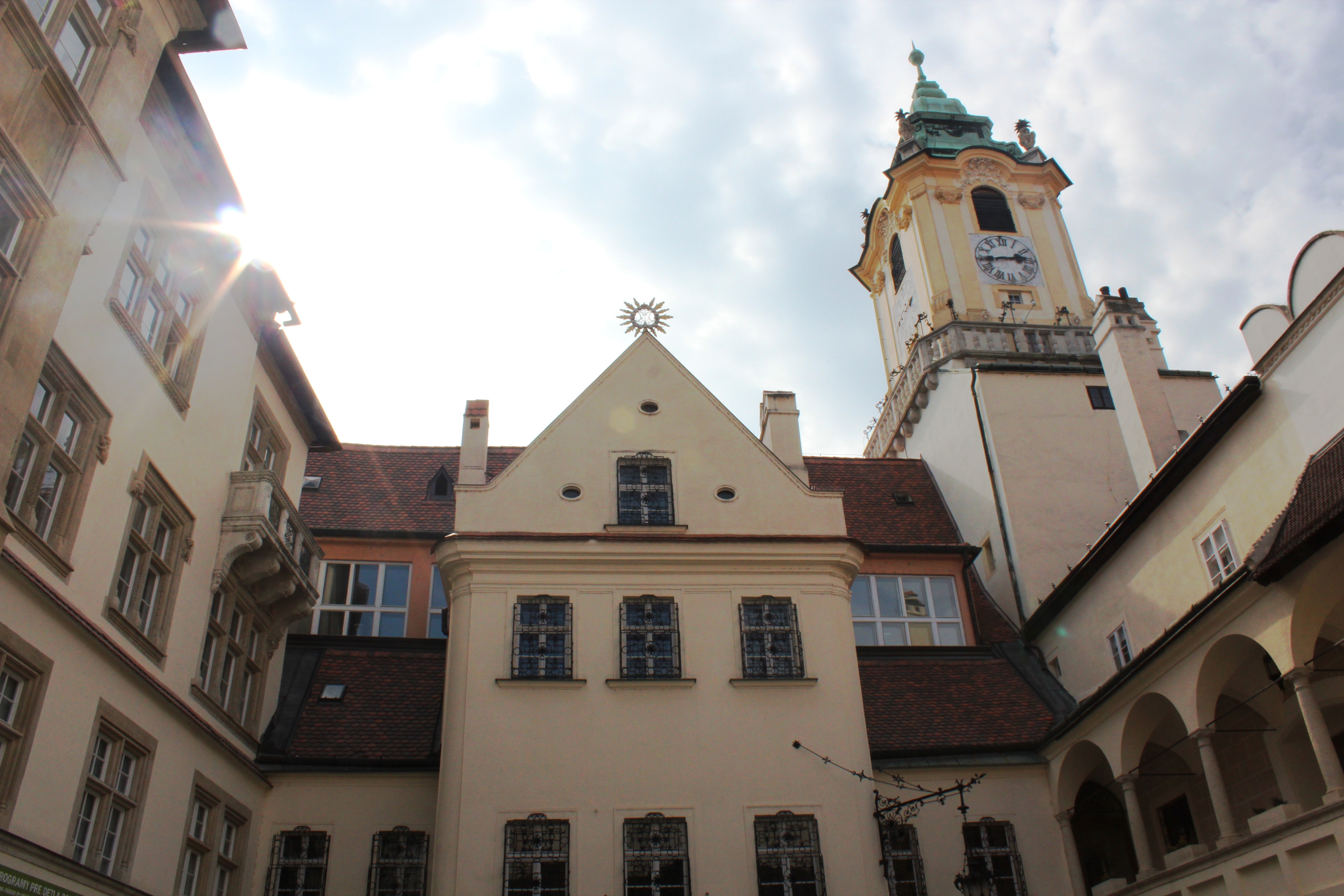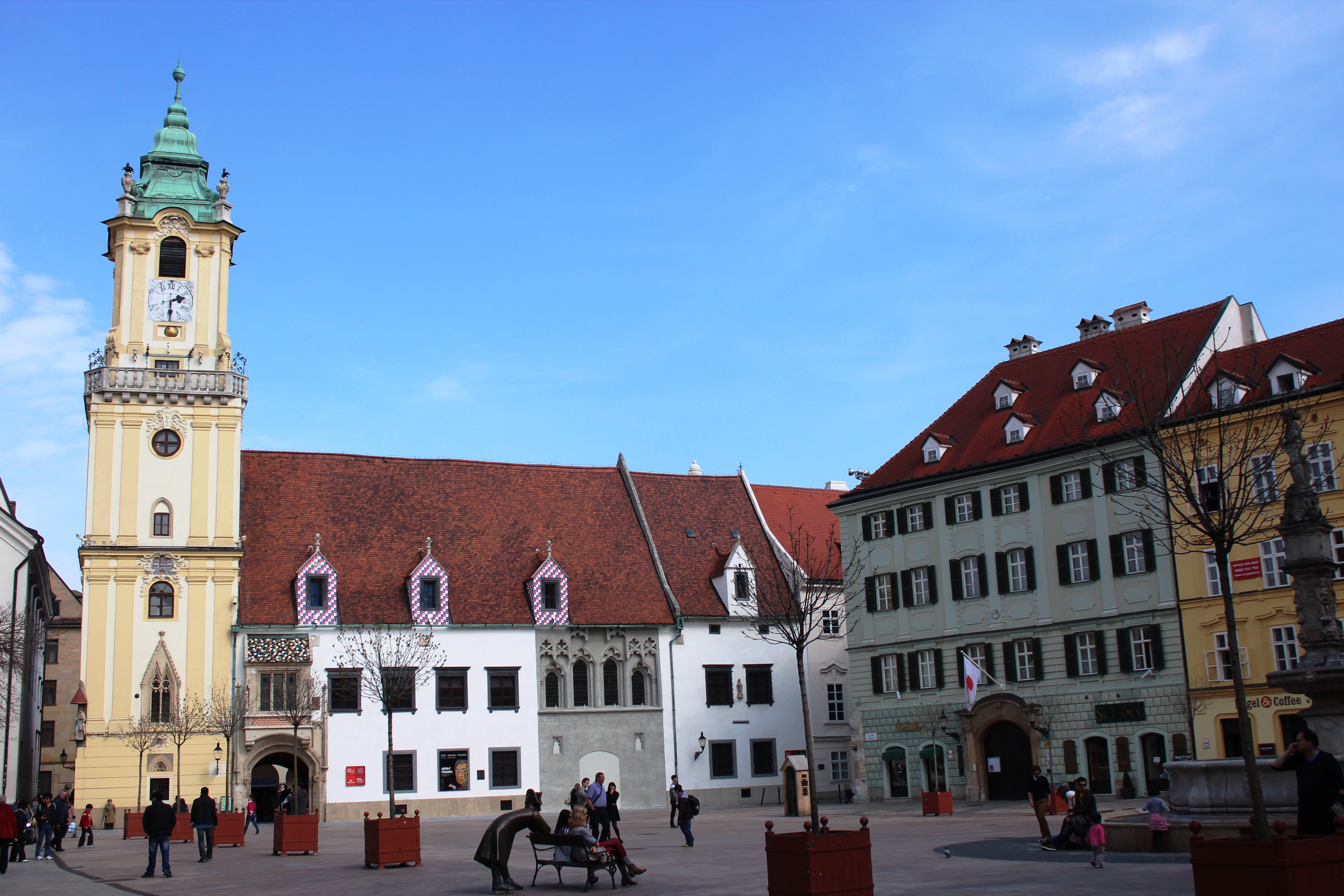 7) OLD TOWN HALL: Old Town Hall of Bratislava is in the main square of the city in Hlavne namestie. There are some interesting statues there: a man with hat leaning on a chair and statue of a guard in the middle of the square.