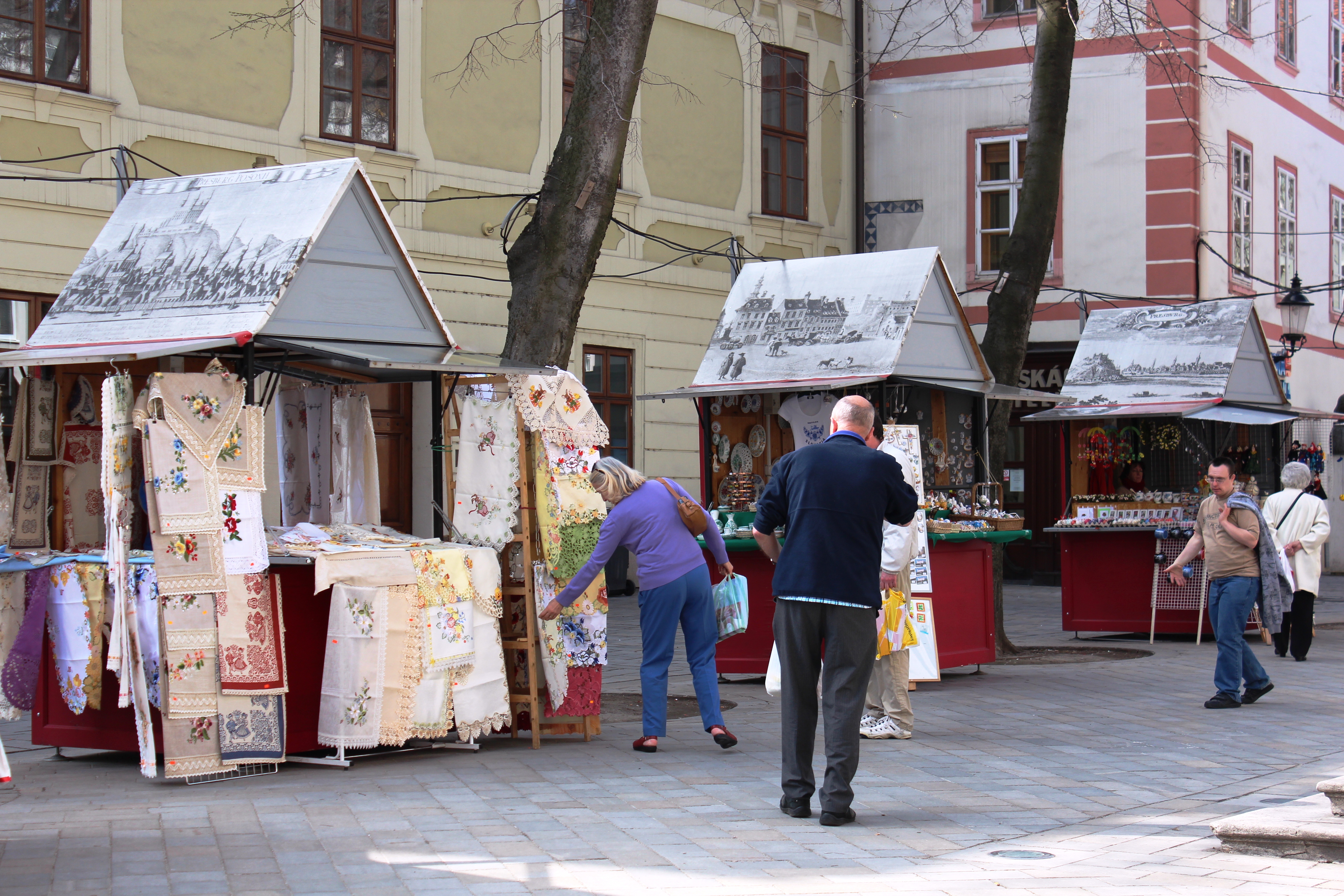 Market in Hlavne Namestie near Old Town Hall in Bratislava, Slovakia