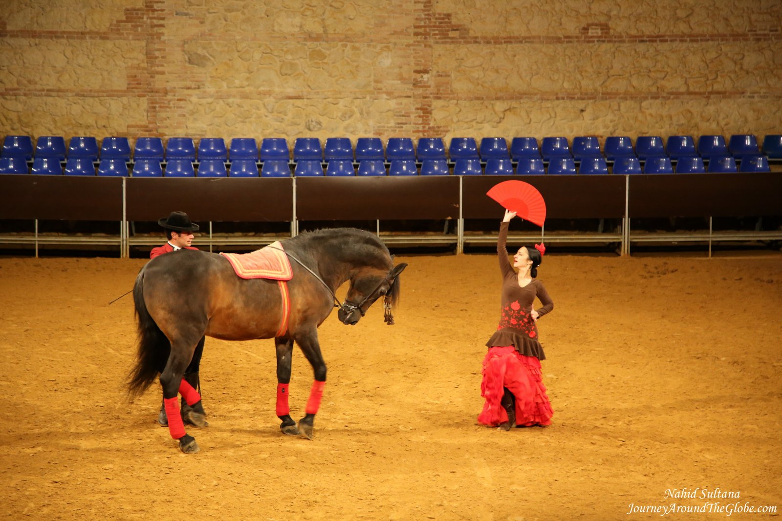 The Royal Stable also hosts daily Equestrian show with Flamenco performance. We were thinking of attending a Flamenco show but this sounded even better. We bought the ticket right away and came back at night for the show. Various types of tricks and plays by different horses are shown here. Two ladies performed Flamenco with the horses. Our daughters loved the show and were very excited about it. They had beautiful arrangements with lights and Flamenco music, a great experience for all of us.