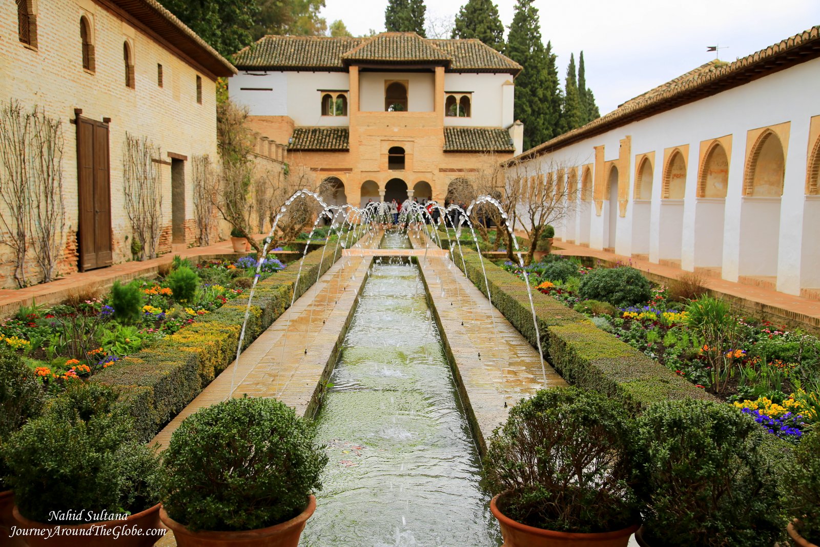 The highlights of Generalife are its palace and the gardens. Patio de la Sultana is one of the many beautiful gardens of Generalife. Have a little break sometimes, relax, and take in the landscape.