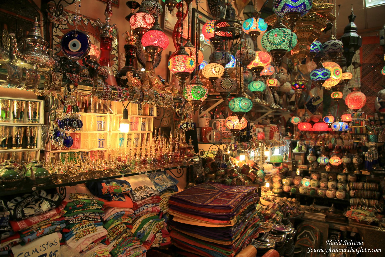 3) MOROCCAN BAZAARS: There are two Moroccan bazaars in the center of Granada. One is near the cathedral and the bigger one is on the other side of the cathedral, about couple blocks away. The bigger one is actually quiet big and consists of few narrow alleys (some with steps) and beautiful neighborhoods. I felt like I was walking thru Middle-Eastern souks while there. You can find all sorts of things in these stores. These colorful shops with unique items are worth a visit even if you don’t buy anything. But if you are into souvenirs, these markets offers some traditional Moroccan or Islamic arts and items. Starting from spices, leather things, decorative lamps/lanterns, babouche, tea-sets, pillow covers, potteries, scarfs, and tons of other items are available here. Make sure to bargain whatever the price they offer, may be start with half price of whatever they are asking for.
