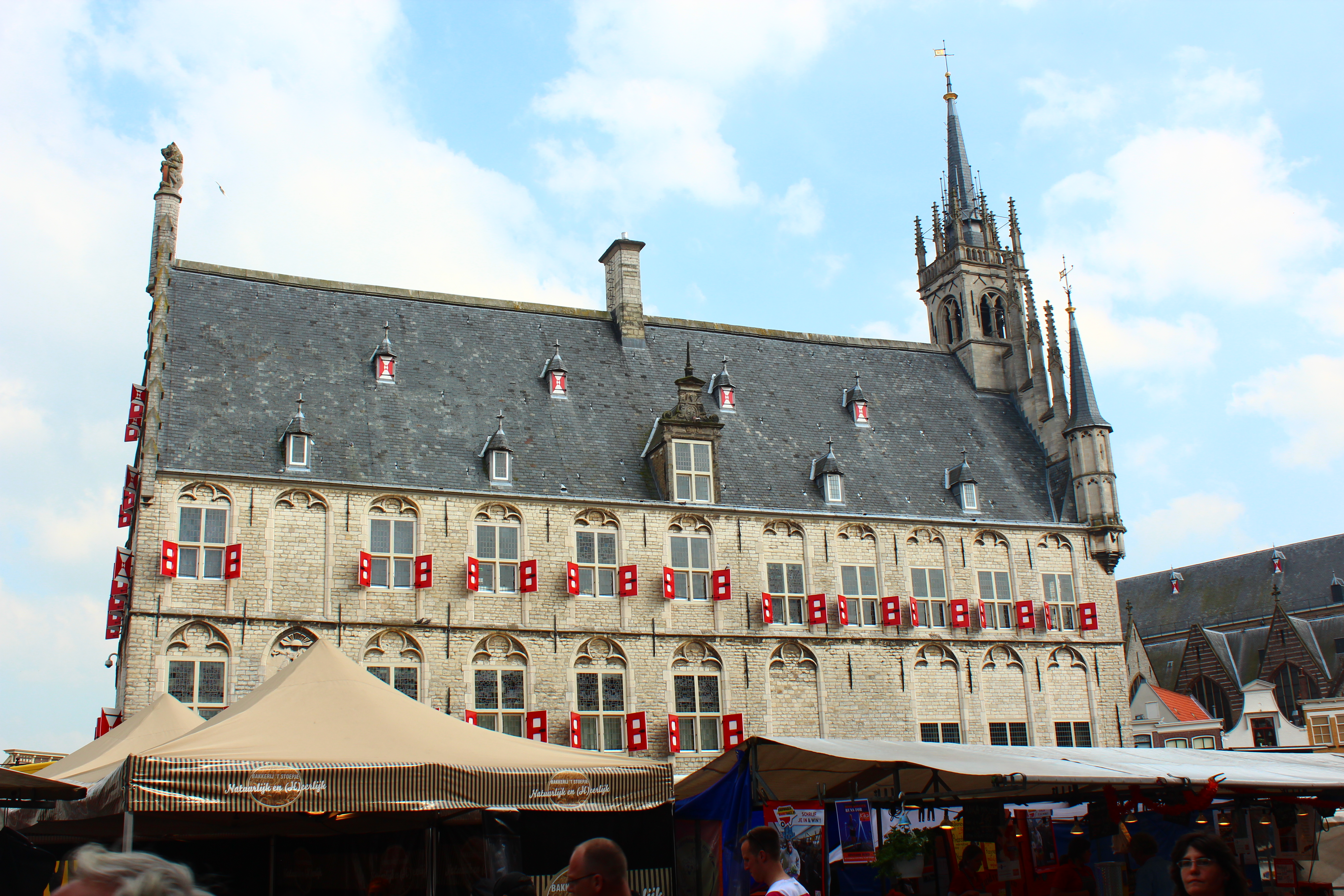 3) MARKET SQUARE: The market square is the main spot for tourists and a lively place for locals to hang out and shop. There is a big farmer’s market that takes place here every Saturday and is open until 5 pm. You will find fresh produces, clothes, purses, food stalls, and ofcourse cheeses. We saw some Dutch girls in their traditional outfit giving away free samples of cheese (they don’t mind if you go take pictures with them). Old Town Hall adds beauty to this square with its Gothic look and bright red colored windows.