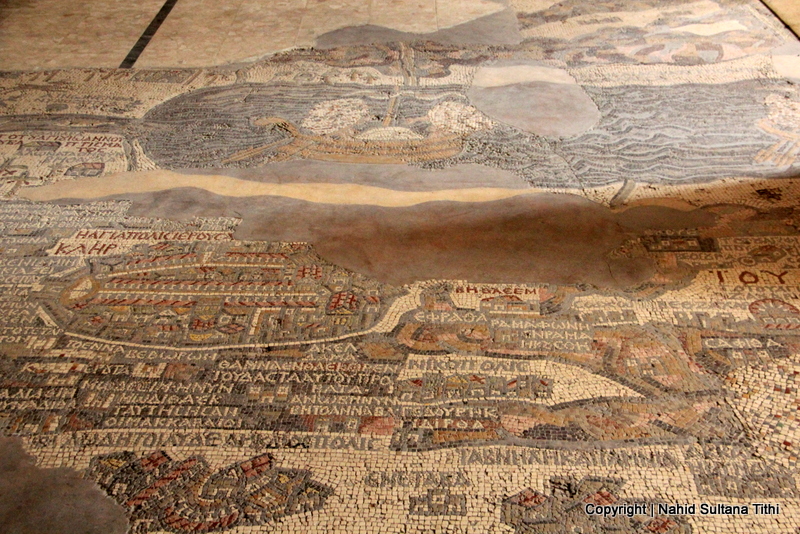 DAY TRIP to MADABA, MT. NEBO, BETHANY, and DEAD SEA: This was a great day-trip to get out from hustling bustling Old Town Amman. We saw all the things that we wanted to see in Amman on our first day. 2nd day was kept for this trip which was booked thru Arab Tower Hotel/Al-Burj Arab in Amman. We rented a private taxi for 54JD for the whole day (entrance fee to the below places weren’t included in this fee). The driver spoke very little English but he was a friendly young man and could explain some histories on these places.
