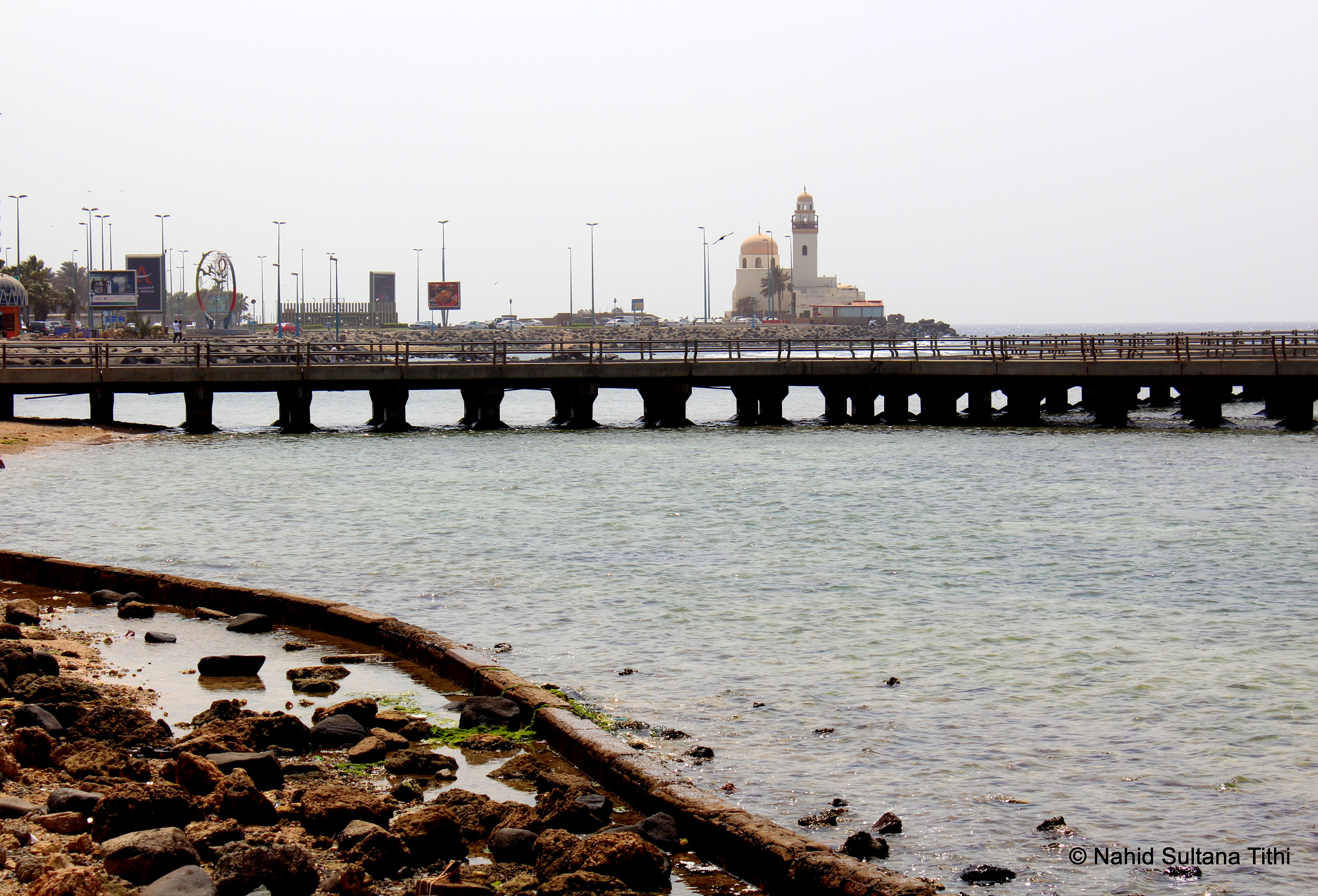 1) RED SEA/JEDDA CORNICHE: Jeddah Corniche offers a spectacular view of Red Sea. This is a beautiful place to be during sunset when it’s not too hot. The beach where we stopped was nice and had a pier to take a little walk that extended onto the water. You can see some nice mosques in distance, big hotel buildings by the shore, and finally, the blue and green serene water of Red Sea. The beach is not really for surfing or taking a bath. But you can go to the water and wet your feet to feel the water of the sea.
