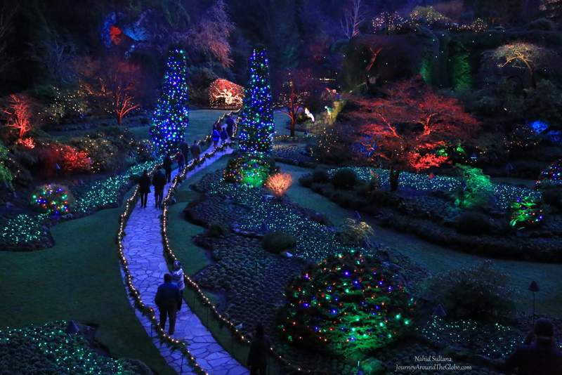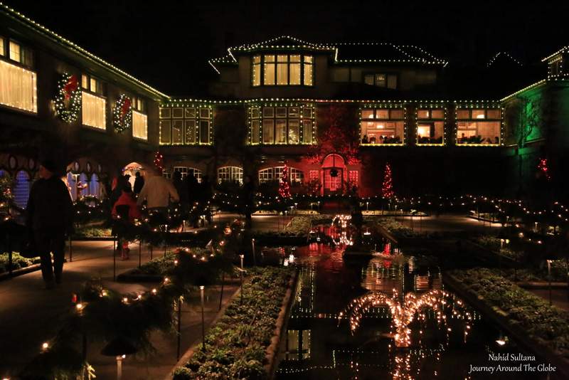 6) BUTCHART GARDEN: Butchart Garden is one of the most visited spots in Victoria and another National Historic Site of Canada. The garden had magical lighting and holiday decorations everywhere. There was also a venue for ice skating where skate rentals were available too.
