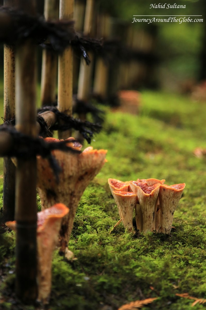 Mushrooms on the ground of Portland Japanese Garden in Oregon